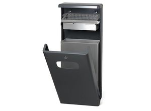 Gartentische Wohnen Haus Garten Garten Balkon Gartenmöbel - - Außenabfallsammler, Stahl, Volumen 22 l, Wand- oder Pfostenmontage. Anlieferung = montiert. Volumen = 22 Liter. Höhe = 570 mm. Breite = 300 mm. Tiefe = 275 mm. Material Abfallbehälter = Stahl, verzinkt. Farbe = grau. Befestigungsart = Wand- und Pfostenmontage. Gewicht = 21 kg. Anzahl Sammeleinheiten = 1-fach-Sammler. Produkttyp = Wandabfalleimer. Zolltarifnummer = 73101000. Herkunftsland = DEU. Bruttogewicht = 23 kg. Gewicht = 21 kg. Aus verzinktem Stahl. Robust und widerstandsfähig. UV- und witterungsbeständig pulverbeschichtet. Einwurf für Zigarettenabfälle und separate Ascherlade. Vierkant-Verriegelung. WasteVision Pole-Ashtray zur Rohr- oder Wandmontage - robust, wetterfest und funktional Der WasteVision Pole-Ashtray für Außenbereiche ist eine Kombination aus Abfallsammler und Ascher und überzeugt durch robuste Bauweise, hohe Widerstandsfähigkeit und eine praktische Handhabung. Er vereint hochwertige Verarbeitung mit durchdachter Funktionalität. Gefertigt aus verzinktem Stahl und mit einer UV- sowie witterungsbeständigen Pulverbeschichtung in Weißaluminium (RAL 9006) und Eisenglimmer (DB 703), hält der Abfalleimer selbst anspruchsvollen Bedingungen stand. Der großzügige Einwurf mit überdachung ermöglicht eine saubere Entsorgung und schützt den Inhalt vor Witterungseinflüssen. Dank des aufklappbaren Halterahmens kann die Abfalltüte sicher fixiert werden. Das ergonomische Design ermöglicht ein komfortables ... Dieser Wandabfallsammler mit Ascher ist eine praktische Kombination für Raucherbereiche im Außenbereich. ![]() Wandabfallsammler mit Ascher, Volumen 16 l, BxHxT 400 x 650 x 190 mm, anthrazit kaiserkraft