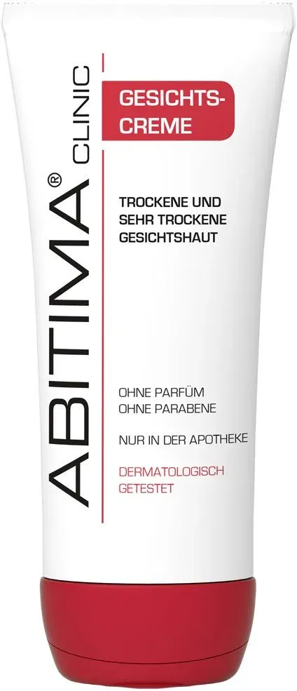 Verfügbarkeit: 1-2 Werktage - 100,10 €/l - Kategorie: Medizinische Körperpflege - Abitima Clinic - GTIN:4150068124371 - PZN:06812437 - ABITIMA CLINIC Gesichtscreme 100 ml - rezeptfrei - von PUREN Pharma GmbH & Co. KG - Creme - 100 ml - 10,01 Euro bei DocMorris Apotheke - gefunden von billiger.de ![]() ![]() ABITIMA CLINIC Gesichtscreme 75 ml ? bei trockener Haut, beruhigt irritierte Haut, spendet intensive Feuchtigkeit, mit Lanolin, Vitamin E & Glycerin