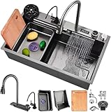 Zustand: Neu - 1 Becken - Generisch Generic - A-1 KM-GkhJHz-Blacka-75x45cm - - Geräumige Wasserfallspüle mit einer Schüssel bietet reichlich Platz zum Waschen großer Töpfe und Pfannen, ideal für geschäftige Küchen. Inklusive wesentlichem Zubehör wie Glasreiniger und Ablaufkorb für zusätzlichen Komfort. Der 360-Grad-ausziehbare Wasserhahn bietet drei einstellbare Wassermodi für verschiedene Reinigungsaufgaben. Verfügt über intuitive Bedienelemente für einfaches Wasserflussmanagement und verbessert die Funktionalität der Küche. Robuste Edelstahlkonstruktion mit einer Dicke von 3 mm und fortschrittlicher Beschichtung widersteht Kratzern, Flecken und Schmutz, sorgt für ein langlebiges Aussehen und einfache Wartung. Innovatives U-förmiges Design mit integriertem Ablaufschalter ermöglicht eine schnelle Entwässerung, verhindert stehendes Wasser und erleichtert eine schnelle Reinigung für ein konstant sauberes Waschbecken. Erhältlich in mehreren Optionen: Basismodell mit Wasserfall-Wasserhahn, verbessertes Modell mit LED-Anzeige oder Gold-Modell mit goldenem Wasserhahn, um verschiedene Küchenstile zu ergänzen. - Verkäufer: lü liang shi chang qiao ke ji you xian gong si im amazon.de Marketplace ![]() ![]()