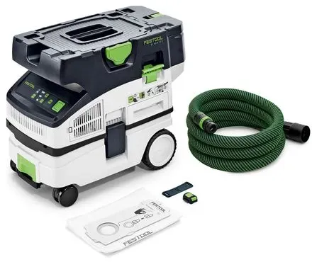 Reinigen Staubsauger - EAN:4014549394465 - Kompakte Saugkraft ohne Kabel. Perfektioniert für Eure Akku-Werkzeuge. Eigenschaften: Leistungsstark: Durch die 36 V-Turbine vergleichbare Power wie ein Kabel-Sauger Unabhängig: Absaugen ganz ohne Steckdose mit 2 x 18 V (4,0/5,2/8,0 Ah) Akkupacks Staubfreie Akku-Anwendungen: Perfektes Zusammenspiel mit den Festool Akku-Werkzeugen für mobiles Sägen, Schleifen oder Bohren Mobil: Durch kompakte Bauform und geringes Gewicht einfach zu Transportieren Regulierbar: Drei Stufen zur Einstellung der Saugleistung Unterbrechungsfrei: Mit vier Akkupacks und Schnellladegerät TCL 6 DUO in den meisten Akku-Anwendungen durchgängig Arbeiten Praktisch: Einschalten des Saugers über den Bluetooth R Akkupack oder die Fernbedienung Manuelle Abreinigung: Für die Wiederherstellung der Saugkraft und maximale Füllung des Filtersacks Gesünder arbeiten: In der Staubklasse L Anwendung Absaugung von Akku-Werkzeugen für kleinere und kurzzeitige Schleif-, Säge oder Bohrarbeiten vor Ort Ideal für den mobilen Einsatz bei Service-und Montagearbeiten und zur Endreinigung Zum Nass- und Trockensaugen geeignet (spezieller Nassfilter für das Nasssaugen erforderlich) Bluetooth R Funktionalität für Sauger Ferneinschaltung bei Akku-Werkzeugen Behälter-/Filtersackvolumen 10/7,5 l Zulassung für Staubklasse L Mit manueller Filter- und Filtersackabreinigung Lieferumfang Ohne Akkupack, ohne Ladegerät, High Performance Hauptfilter, SELFCLEAN Filtersack SC-FIS-CT, Saugschlauch ... Dieses Angebot von endlich-sicher.de ist eine gute Option für das CTLC MINI I-Basic ohne Energie-Set. ![]() ![]() Festool Akku-Absaugmobil CLEANTEC CTLC MINI I-Basic Ausführung: ohne Energie-Set SYS 18V 4x5,0/TCL 6 DUO