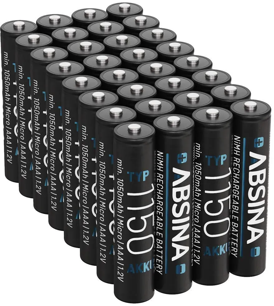 Auf Lager Versand durch AmazonABSINA 32x AAA Akku 1150 NiMH mit 1,2V & min. 1050 mAh - AAA Akkus wiederaufladbar für Geräte mit hohem Stromverbrauch - Batterien AAA wiederaufladbar ideal für DECT Telefon - Akku AAA Micro