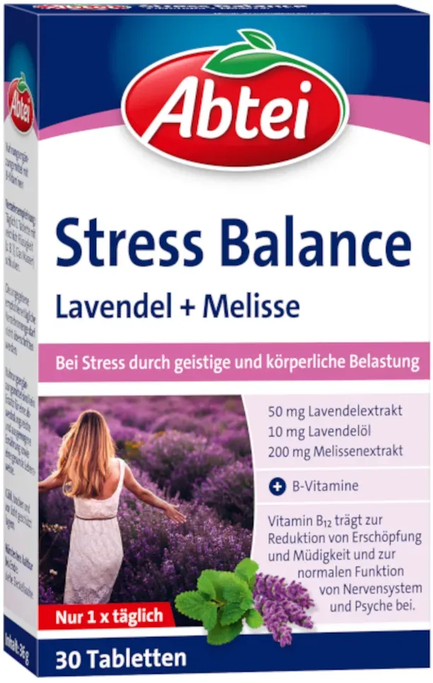 Abtei stress und balance META PreisvergleichMit dem Meta-Preisvergleich suchen Sie gleichzeitig bei den großen Preisvergleich Portalen!Jetzt live Suche nach abtei stress und balance starten! Abtei stress und balance KaufberatungBei der Suche nach Abtei Stress Balance sollten Sie beachten, dass es sich um ein Nahrungsergänzungsmittel handelt, das speziell zur Unterstützung bei Stress durch geistige und körperliche Belastung entwickelt wurde. Die Tabletten enthalten natürliche Pflanzenextrakte wie Lavendel und Melisse sowie einen sorgfältig ausgewählten Vitamin-B-Komplex (B1, B2, B6, B12 und Pantothensäure), die zur Verringerung von Müdigkeit und Erschöpfung beitragen und die normale psychische Funktion sowie den Energiestoffwechsel unterstützen[1][3][13]. Wichtige Produktmerkmale sind: