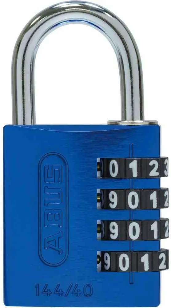 ABUS - EAN: 4003318825583 - Aluminium-Zahlenschloss mit individuell einstellbarem, 4-stelligem Zahlencode und Kunststoffwalzen. - bei decathlon.de - aus Yadore Produktdaten Dieses blaue ABUS Zahlenschloss 144/40 B/DFNLI ist ein solides Angebot im mittleren Preissegment. ![]() ABUS Zahlenschloss 144/40 blau B/DFNLI