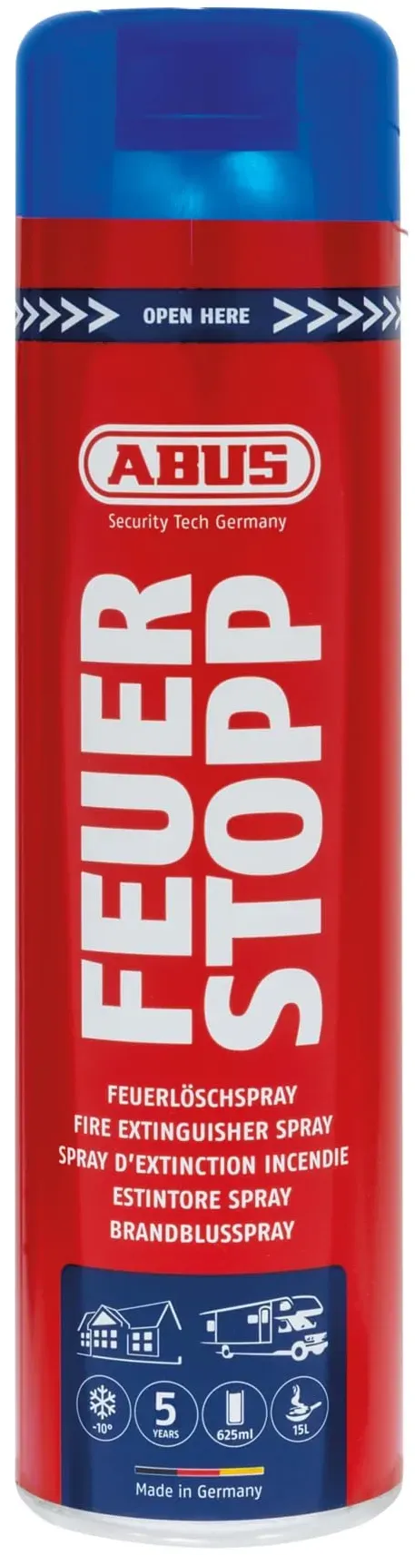 Feuerlöschmittel Sonstige - EAN:4003318857270 - ABUS Feuerlöschspray - schnell, einfach und sicher!Mit dem Schaum aus dem ABUS Feuerlöschspray bekämpfen Sie schnell und effektiv kleinere Brände. Schnell lösen eine vergessene Kerze, eine Zigarette oder ein heißer Topf mit Speisefett einen Brand aus, der zu einem erheblichen Schaden führen oder sogar lebensbedrohlich werden kann. Wer hier zu viel Zeit verstreichen lässt, hat meist keine Chance mehr, den Brand sicher zu bekämpfen. Einen Feuerlöscher hat allerdings kaum jemand zu Hause. Auf den Ernstfall vorbereitetMit dem Feuerlöschspray von ABUS können auch ungeübte Personen schnell, effektiv und vor allem sicher sogenannte Entstehungsbrände bekämpfen. Der hochwirksame Feuerlöscher kann aufgrund seiner praktischen Größe nahezu überall platziert werden - und ist so stets griffbereit, geeignet für Haus, Wohnung, Fahrzeuge. Im Gegensatz zu Feuerlöschern ist das ABUS Feuerlöschspray handlich durch sein geringes Gewicht, einfach zu bedienen wie eine übliche Spraydose und bei Entstehungsbränden ebenso schnell und effektiv. Es liefert Ihnen bis zu 4,0 m Sprühweite und ca. 30,0 Sekunden Sprühzeit.Bitte beachten Sie die Gefahren- und Sicherheitshinweise:Gefahrenhinweise: - Behälter steht unter Druck: Kann bei Erwärmung bersten.- Gesundheitsschädlich bei Verschlucken.- Verursacht schwere Augenreizung.Sicherheitshinweise: - Von Hitze, heißen Oberflächen, Funken, offenen Flammen und anderen Zündquellen fernhalten. Nicht rauchen.- Nicht ... ![]() ![]() Abus Löschspray Feuerstopp FS625 FS625 625 ml m.Dauerdruck o.Hal.