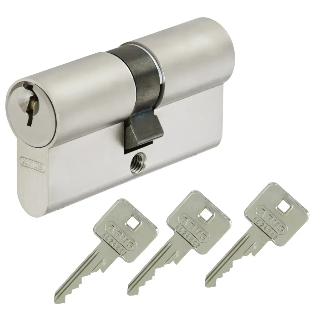 Türschlösser Gesamtsortiment Baumarkt + Garten Bauen + Renovieren Eisenwaren Türbeschlag Türschloss + Schliesszylinder Schmiedestücke & Hardware - EAN:4003318862144 - Der Profilzylinder A93NP 55/60 von ABUS ist eine zuverlässige Sicherheitslösung für Haus- und Wohnungseingangstüren. Mit einer Not- und Gefahrenfunktion ausgestattet, bietet dieser Zylinder zusätzlichen Schutz und Flexibilität in Notfallsituationen. Er erfüllt die strengen Anforderungen der DIN EN 1303:2015-08 und ist somit für den Einsatz in Feuerschutz- und Rauchschutztüren geeignet. Der Zylinder ist gleichschliessend kombinierbar mit verschiedenen ABUS Schlössern, was eine einfache Integration in bestehende Sicherheitssysteme ermöglicht. Der A93NP ist aus hochwertigem Messing gefertigt und bietet durch gehärtete Stahlstifte Anbohrschutz, was die Sicherheit weiter erhöht. Mit drei kodifizierten Schlüsseln im Lieferumfang ist der Zylinder sofort einsatzbereit und bietet eine hohe Benutzerfreundlichkeit. - Not- und Gefahrenfunktion für zusätzliche Sicherheit - Geeignet für Feuerschutz- und Rauchschutztüren - Anbohrschutz durch gehärtete Stahlstifte - Gleichschliessend kombinierbar mit ABUS Panzerriegelschlössern - Prüfung nach DIN EN 1303 und ISO 9001:2015. - gefunden von Kelkoo Ein Premium-Profildoppelzylinder mit Not- und Gefahrenfunktion in einer sehr großen Dimension, ideal für maximale Sicherheit. ![]()