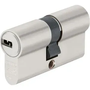 Eisenwaren Schlösser & Sicherheit Schlösser Schließzylinder Schmiedestücke & Hardware - EAN:4003318436895 - SEHR SICHER, ZUVERLÄSSIG UND KOMFORTABELErhöhen Sie die Sicherheit Ihrer Haus- und Wohnungstüren mit diesem Türzylinder mit praktischem Wendeschlüssel.Zuverlässige Türzylinder müssen Ihre Haus- und Wohnungstüren stets gegen Manipulationsversuche schützen.Setzen Sie deshalb auf diesen Zylinder mit SKG**-Anbohrschutz.Acht Schließelemente in zwei unabhängigen Stiftreihen machen den Türzylinder besonders sicher.Zudem ist er mit einer Not- und Gefahrenfunktion ausgestattet, welche die beidseitige Schließbarkeit auch dann ermöglicht, wenn in einer Seite ein Schlüssel steckt. Eigenschaften: Anwendung: Haustür, Ausführung: 6-stiftig, Basis: Profil-Halbzylinder, Baulänge A, außen: 10, Baulänge B, innen: 30, Einsatzbereich: Haustür, Ergänzung: mit Anbohrschutz, Farbton: Nickel Pearl, Funktion: verschiedenschließend, Gesamtlänge: 40 mm, Material (Schlüssel): Messing, Material Schlüssel: Messing, Material Zylinder: Messing, Norm: ISO 9001:2008, Oberfläche: matt, Schlüssel Anzahl: 3 St., - gefunden von Kelkoo Dieser Profilzylinder bietet eine gute Balance aus Preis und gängiger Größe für den Austausch. ![]()