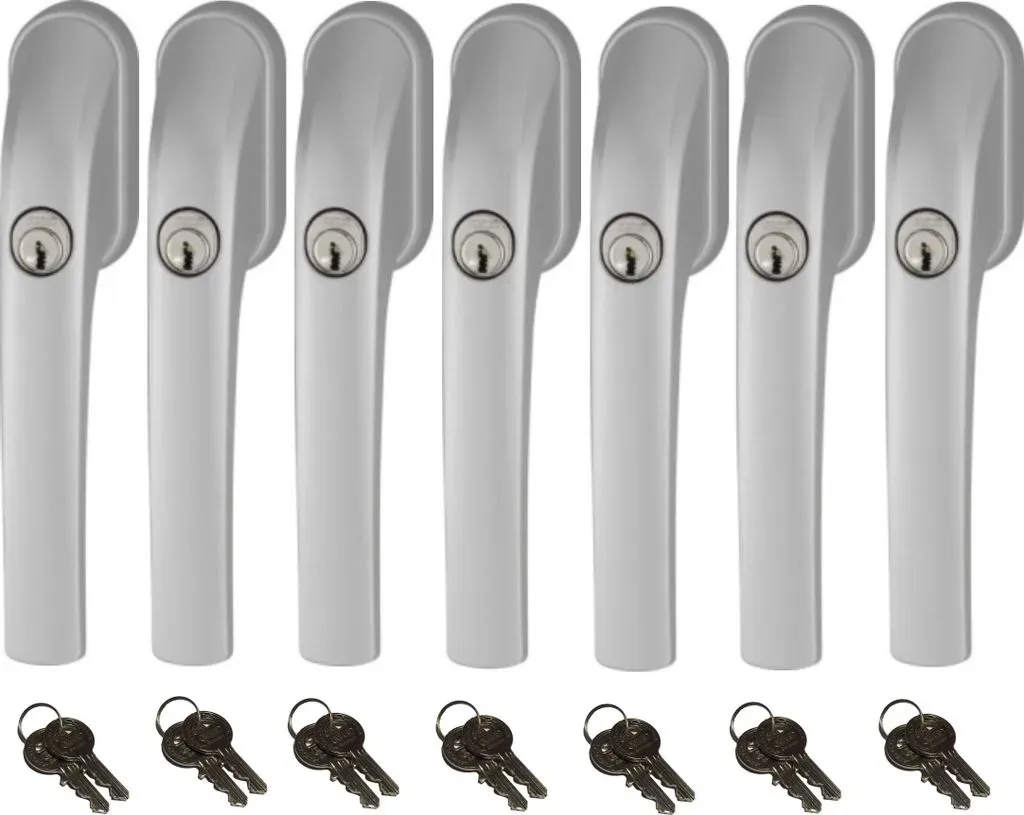 Zustand: Neu - Schlösser & Riegel - ABUS - - EAN: 4251213810146 - Verriegelung durch einfaches Drücken des Zylinders ohne Schlüssel Vierkantstift kann auf individuelle Länge von 32mm-44mm angepasst werden incl. 22 Schlüssel Verriegelbar in Stellung geschlossen und gekippt', auch als Kindersicherung geeignet Nach DIN 18267 Klasse 2 mit 200Nm Abdreh- und Abreißfestigkeit - Verkäufer: Sicherheitstechnik-Feldmann im amazon.de Marketplace Dieses 10er Set in WeiÃ? bietet eine groÃ?e Anzahl an gleichschlieÃ?enden Griffen für umfassende Sicherheit. ![]() ![]() Abus FG300 abschließbarer Fenstergriff, weiß, im Set 10 Stück alle gleichschließend AL0089 mit insgesamt 20 Schlüssel