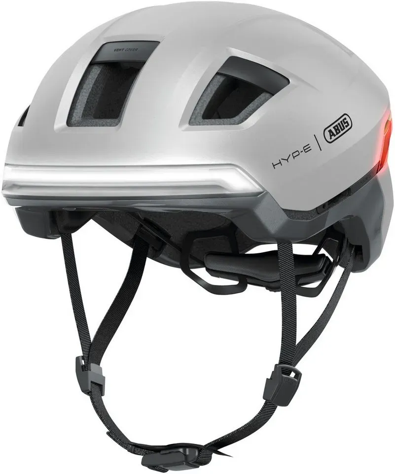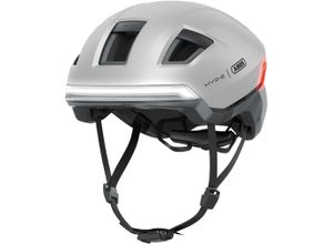 Radsport Mountainbiking Lifestyle Sport Freizeit - - ABUS HYP-E BL.ACE - für Pendler und andere Fahrradfans auf E-Bike und Fahrrad: Für Pendler, die 365 Tage im Jahr und bei jedem Wetter das Fahrrad wählen, ist der HYP-E der Helm, der die Herausforderungen jeder Jahreszeit annimmt und ein sichtbares Statement setzt: Mit seinen Lichtern erhöht er deine Sichtbarkeit im Straßenverkehr, bei diesigem Wetter und in Dunkelheit. Neben dem Hecklicht verfügt der HYP-E über ein Frontlicht. Beide Lichter aktivierst du mit einem Knopf auf der Helmrückseite. Das Blinklicht zum Anzeigen eines Abbiegevorgangs schaltest du bequem über die Fernbedienung am Lenker ein und aus. In der BL.ACE-Variante erhältst du zusätzlich einen kabellosen Bremshebelüberzug: Wenn du bremst, leuchtet das rote Hecklicht auf. Flexibel für jede Jahreszeit Im Sommer sorgen große Belüftungsöffnungen für eine angenehme Luftzirkulation am Kopf. Im Winter kannst du mit dem VentCover ganz einfach die Belüftungsöffnungen schließen. Zusätzlich schützen das Visier und die Ohrenschützer vor Wind und Wetter. Helm für Touren mit E-Bike und S-Pedelec: Der HYP-E erfüllt die Standards der NTA-Norm 8776 - der weltweit erste Sicherheitsstandard speziell für S-Pedelec-Fahrer. Helme mit NTA-Norm werden bei deutlich höheren Aufprallgeschwindigkeiten getestet, bieten besseren Schutz im Bereich des Hinterkopfs sowie der Schläfen., Produktdetails: Verschluss: Magnetverschluss, Hinweise: Einsatzbereich: Radsport, Pflegehinweise: ... Dieser silberne Helm in Größe L aus dem Jahr 2026 ist eine gute Option für größere Köpfe und bietet einen attraktiven Preis. ![]() Abus HYP-E BL.ACE Silber Modell 2026 57-61 cm (L)
