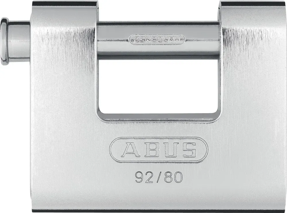 Verfügbarkeit: Innerhalb von 10 Tagen. - 43.79 € / Stück - Kategorie: Vorhängeschlösser - ABUS - GTIN:4003318306099 - - Absicherung von größeren Werten / Gegenständen oder bei hohem Diebstahlrisiko - Zur Absicherung von z. B. Automaten, Rollgittern mit schwer zugänglichem Schließbereich - Ideal in Kombination mit ABUS-Kette 8KS - Schlosskörper aus massivem Messing mit Stahlmantel - Bügel aus gehärtetem Spezialstahl - Anbohr- und Ziehschutz - Präzisions-Stiftzylinder - Schließzwang: Verriegelung nur mit Schlüssel möglich - inkl. zwei Schlüssel -Größe 92/65: -Breite 66,5mm / lichte Bügelweite 33mm / lichte Bügelhöhe 14mm / Bügeldurchmesser 10mm / -Stärke 28mm / Höhe 58mm -Göße 92/80: -Breite 78mm / lichte Bügelweite 37mm / lichte Bügelhöhe 17mm / Bügeldurchmessser 12mm / -Stärke 29,5mm / Höhe 65mm -Was bedeutet ...? -verschiedenschliessend = jedes Schloss hat eigene Schlüssel -gleichschliessend = alle gleichzeitig bestellten Schlösser haben gleiche Schlüssel; jeder Schlüssel passt in jedesgleichzeitig bestellte Schloss - 43,79 Euro bei Ludwig Ohlendorf - gefunden von billiger.de Dieses Monobloc-Vorhängeschloss der Serie 92/80 bietet durch seinen Stahlmantel zusätzlichen Schutz. ![]() ![]() ABUS Monobloc Vorhängeschloss 92/80 - Messing-Schloss mit Stahlmantel - für Automaten, Rollgitter u. v. m. - mit dickem Bolzen - ABUS-Sicherheitslevel 8 - Silber