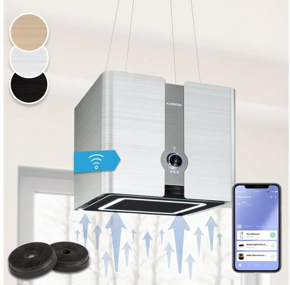 lieferbar-in 2-3 Werktagen bei dirKlarstein Deckenhaube Futurelight Smart Serie CGCH6-Futurelight-SL Futurelight Smart, Inselhaube Abzughaube Dunstabzugshaube silberfarben