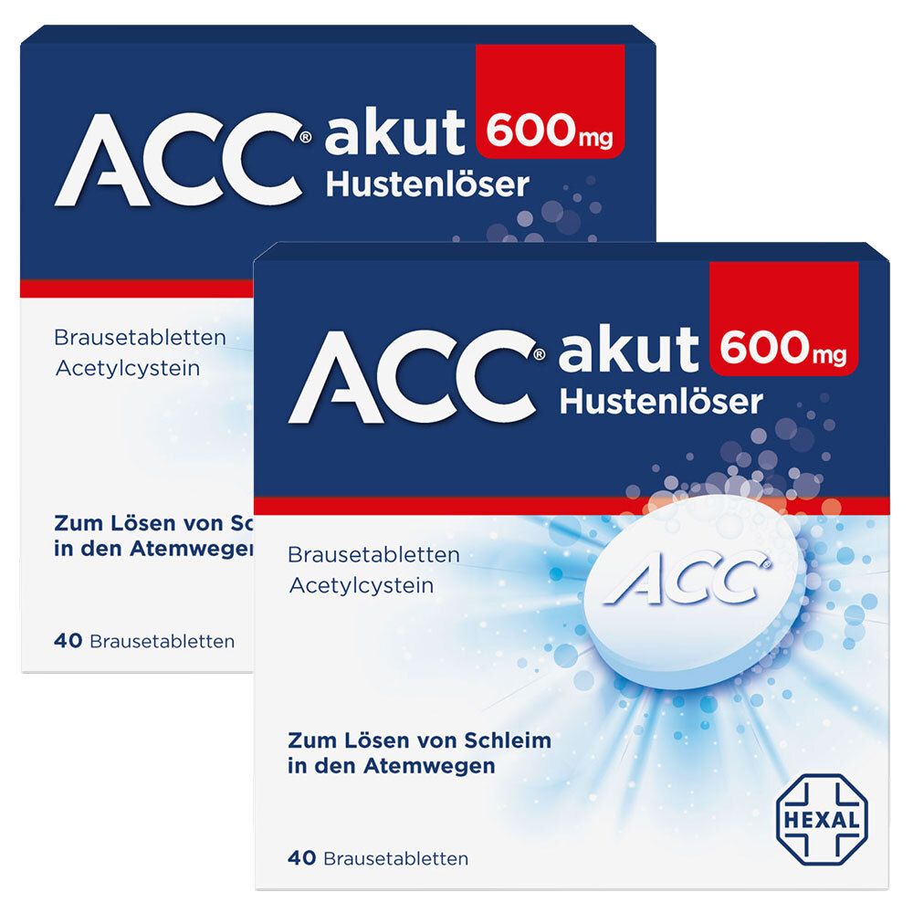 Acc akut 600 40 META PreisvergleichMit dem Meta-Preisvergleich suchen Sie gleichzeitig bei den großen Preisvergleich Portalen!Jetzt live Suche nach acc akut 600 40 starten! Acc akut 600 40 KaufberatungACC akut 600 Brausetabletten (40 Stk.) von Hexal AG ist ein rezeptfreier Schleimlöser mit 600 mg Acetylcystein pro Tablette zur Linderung von produktivem Husten durch Auflösung zähen Schleims in den Atemwegen.[1][2][3] Es eignet sich für Jugendliche ab 14 Jahren und Erwachsene (Dosierung: 1/2 Tablette 2x täglich nach Mahlzeiten, max. 600 mg/Tag ohne Rücksprache).[1][2] Wichtige Hinweise vor dem Kauf und zur Anwendung