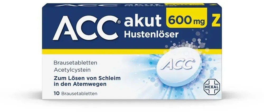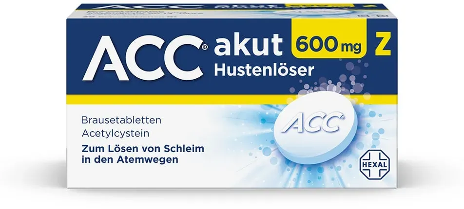 Husten & Erkältung Erkältungs- und Grippetreatments Gesundheitskategorien Haus- & Reiseapotheke Erkältung & Grippe Husten Medizin & Heilmittel - Anwendungsgebiet von ACC akut 600mg Z Hustenlöser ACC R akut 600 mg Z: Brausetabletten zum Lösen von Schleim ACC R akut 600 mg Z: Hustenlöser mit erfrischendem ZitronengeschmackHusten ist ein besonders lästiges Symptom einer Erkältung, das man schnell wieder loswerden will, denn erschwertes Abhusten und festsitzender Schleim können den Alltag schnell einschränken. Wie gut, dass es ACC R gibt, Deutschlands Hustenlöser Nr. 1¹. ACC akut 600mg Z Hustenlöser, mit erfrischendem Zitronengeschmack, hilft, indem es den Schleim löst, das Abhusten erleichtert und so die Bronchien befreit. Dabei hat ACC R akut 600 mg Z einen entscheidenden Vorteil: Die schnell löslichen und gut verträglichen ACC R Brausetabletten müssen nur 1x täglich eingenommen werden! Husten? Vertrauen Sie dem Hustenexperten ACC R Brausetabletten mit 600 mg Acetylcystein zum Auflösen in Wasser Löst den Schleim, erleichtert das Abhusten und befreit so die Bronchien ACC R - Deutschlands Hustenlöser Nr. 1¹ Mit fruchtigfrischem Zitronengeschmack Nur 1 Brausetablette am Tag! Wie entsteht Husten und wie kann ACC R akut 600 mg Z helfenHusten wird in den meisten Fällen durch Viren hervorgerufen, die in die Atemwege eindringen und eine Entzündung der Schleimhaut verursachen. Durch die Entzündung der Schleimhaut bildet sich vermehrt zähflüssiger Schleim. Der ... Dieses Angebot ist eine der günstigsten Optionen für Hexal ACC AKUT 600 Z HUSTENLOESE. ![]() ![]() Hexal ACC AKUT 600 Z HUSTENLOESE
