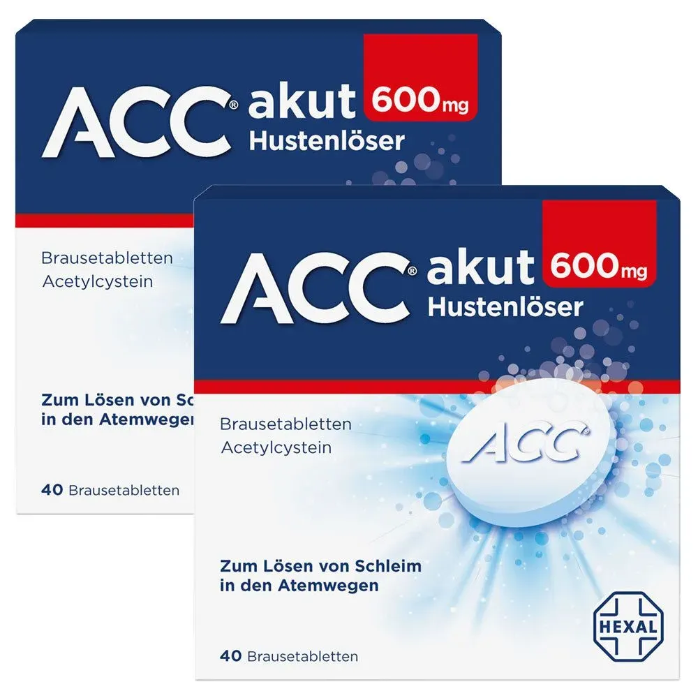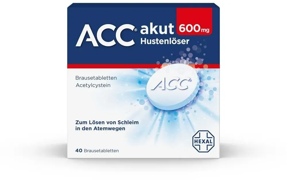 Verfügbarkeit: ca. 1 Werktag - 0.41 € / 1 ct - Kategorie: Arzneimittel - Hexal - GTIN:3522930000693 - PZN:00520917 - ACC akut 600 mg Hustenlöser ist ein Arzneimittel zur Verflüssigung zähen Schleims in den Atemwegen. ACC akut 600 mg Hustenlöser wird angewendet zur Schleimlösung und zum erleichterten Abhusten bei Atemwegserkrankungen mit zähem Schleim. - 16,55 Euro bei Apotheker.com - gefunden von billiger.de Dieses Angebot ist eine der günstigsten Optionen für eine größere Packungsgröße (40 Stück) von Hexal ACC akut 600 Brausetabletten. ![]() ![]() Hexal ACC akut 600 Brausetabletten 40 St