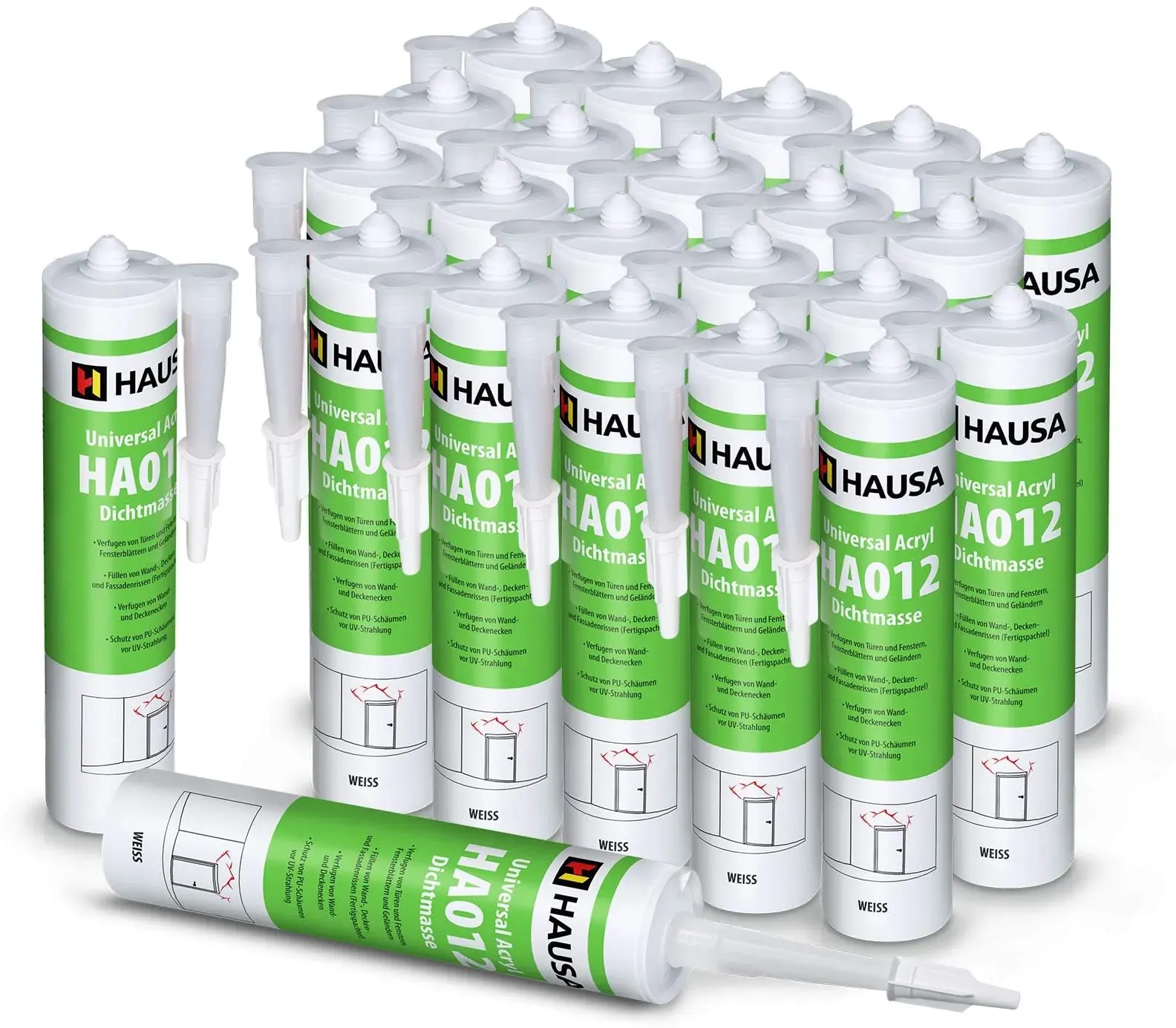 Zustand: Neu - 138,16 € / l - Klebemittel - Alfa - 853 - EAN: 4052198007008 - Profi-Acryl 1K - dauerelastische Acryl-Dichtmasse mit starker Haftfähigkeit und hoher Elastizität in der praktischen, leicht zu verarbeitenden 310 ml Kartusche Sehr gute Haftung auf unterschiedlichsten glatten Oberflächen (z.B. im Trockenbau) und optimal zum Abdichten von leicht belastenden Innenfugen zwischen porösen Materialien wie z. B. Beton, Porenbeton, Holz und Gipskartonplatten Auch für Fugen zwischen Fensterrahmen, Türen und Gipsplatten super geeignet. Reparaturarbeiten an kleineren Wandrissen können mit der Dichtmasse problemlos vorgenommen werden Witterungs- und UV-beständige Acryldichtmasse für den Innen- und Außenbereich Geruchlos, Farbecht und Anstrichverträglich | Lösemittelfrei & Silikonfrei | Temperaturbeständigkeit -20°C bis +75°C - Verkäufer: heimwerker-direkt im amazon.de Marketplace Das 24er-Pack HAUSA Maler-Acryl ist eine ausgezeichnete Wahl für professionelle Anwender oder sehr umfangreiche Projekte, die eine große Menge Dichtmasse erfordern. ![]() ![]() HAUSA Maler-Acryl 24x 310ml elastische Acryl-Dichtmasse HA012 für Fugen im Innen & Außen Bauacryl zum Verfugen von Türen Fenstern Fensterblättern, Füllen von Wand- Decken- Fassadenrissen, weiß