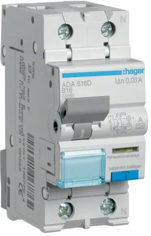 Elektromaterial Wohnen Haus Garten Heimwerken - - Eigenschaften: Fehlerstrom-Leitungsschutzschalter 1P+N 10kA B-16A 30mA Typ A. Fehlerstrom-Leitungsschutzschalter nach DIN EN61009-1 (VDE 0664-20) und DIN EN 61009-2-1 (VDE 0664-21) mit Bi-Connect-Klemmen unten, blaue Test-Taste sowieFehlerstromanzeige. Einfache Entnahme aus dem Phasenschienenverbund. Geeignet zum nachträglichen Anbau von Zusatzeinrichtungen. Beschriftungsmöglichkeit direkt am Gerät (ADA516D) - Versandkostenfrei: false - product_flag_accessory_wohnen: true - - - bei 342032 / Contorion - gefunden von shopping24 Ein gutes Angebot mit detaillierter Produktbeschreibung und einem fairen Preis. ![]() ![]() Hager ADA516D FI/LS-Schalter 1P+N 10kA B-Charakteristik 16A 30mA Typ A