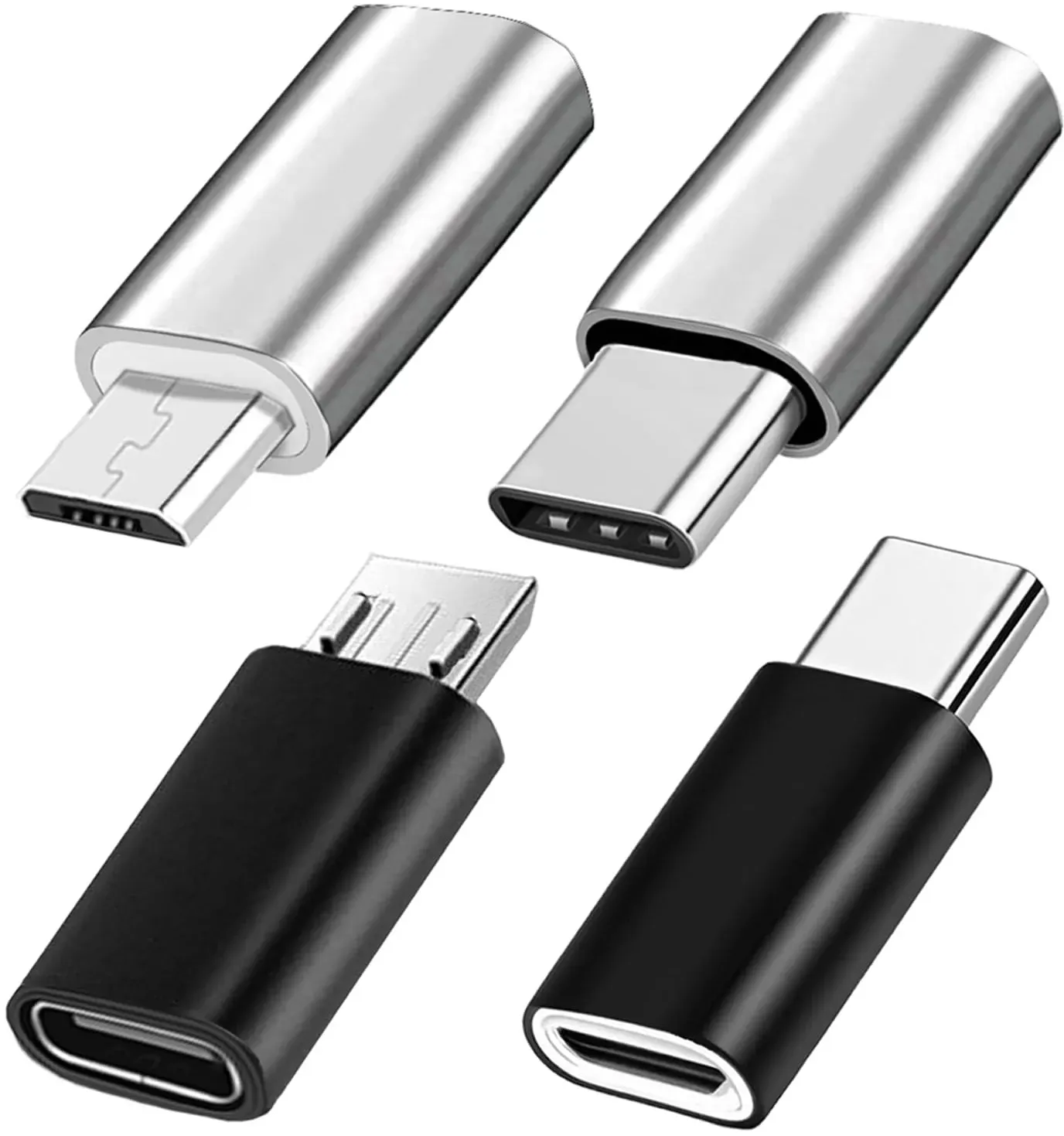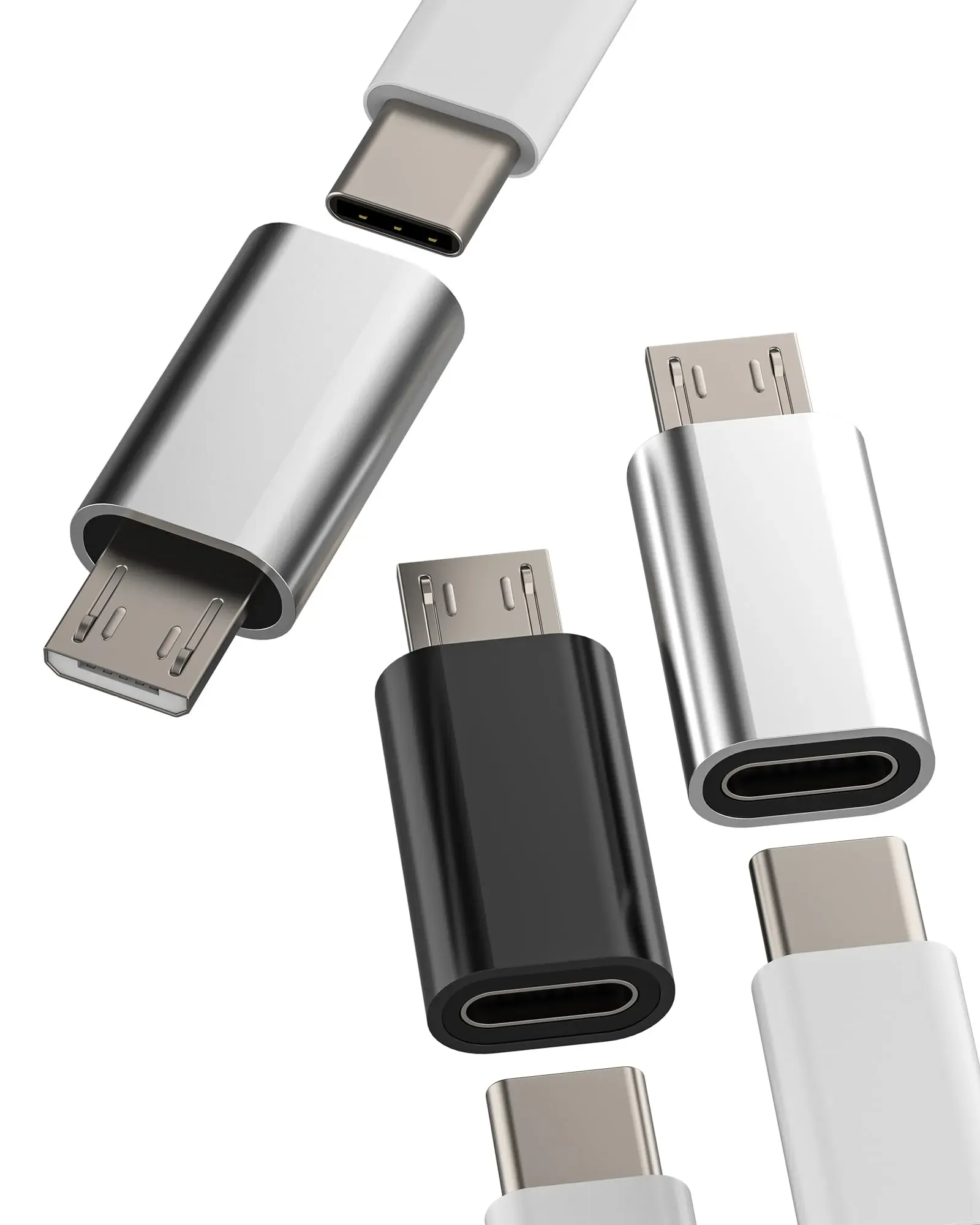 Auf Lager Versand durch AmazonAdapter Micro USB auf USB C (4 Stück), Micro-USB Buchse zu USB-C Stecker OTG Adapter Kompatibel mit Samsung Galaxy, LG, Huawei, Typ-C Handys, Tablets und Mehr (2 Schwarz und 2 Weiß)