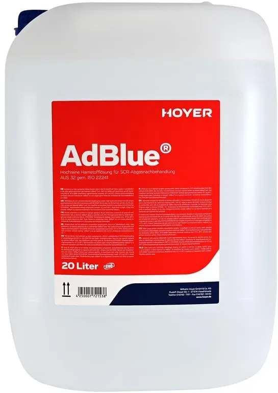 Kategorie: Additive - Wilhelm Hoyer - GTIN:4250007721538 - AdBlue Harnstoff Hoyer - 22,99 Euro bei Amazon Marketplace Home - gefunden von billiger.de Dieses Angebot bietet eine hochreine AdBlue-Harnstofflösung zu einem wettbewerbsfähigen Preis. ![]() ![]() AdBlue 20L | Hochreine AdBlue-Harnstofflösung für die SCR-Abgasbehandlung, 20/25 Liter, hohe Qualität (20L)