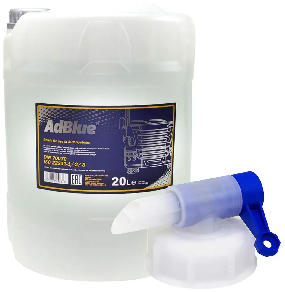 Kategorie: Additive - TECPO - Effektive NOx-Reduktion: Hochreine Harnstofflösung (32,5 %) zur gezielten Reduktion von Stickoxiden in Dieselfahrzeugen mit SCR-Technologie umweltfreundlich und emissionsmindernd. Kompatibel mit SCR-Systemen: Geeignet für alle Diesel-Fahrzeuge mit AdBlue-System, kompatibel mit: EURO 4, 5 und 6 Abgasnormen ideal für PKW, LKW, Transporter und Nutzfahrzeuge. Praktischer 10-Liter-Kanister: Inklusive integriertem Ausgießer für sauberes, tropffreies Nachfüllen ideal für Werkstatt, Garage oder unterwegs im Fahrzeug. Geprüfte Qualität: Produziert nach ISO 22241-1 bis 22241-3 rt höchste Reinheit, Materialverträglichkeit und zuverlässige Funktion im SCR-System. Sicher & benutzerfreundlich: Geruchsarm, farblos und ungiftig einfache Handhabung bei sachgemäßer Anwendung im vorgesehenen AdBlue-Tank (nicht im Dieseltank verwenden!). - 24,99 Euro bei Amazon Marketplace Automotive - gefunden von billiger.de Dieses MANNOL AdBlue-Angebot kommt mit einem praktischen Auslasshahn, der das Umfüllen vereinfacht. ![]() ![]() MVH Bockauf MANNOL AdBlue Harnstofflösung Abgasreinigung Diesel TDI CDI HDI 20 Liter inkl. Auslasshahn