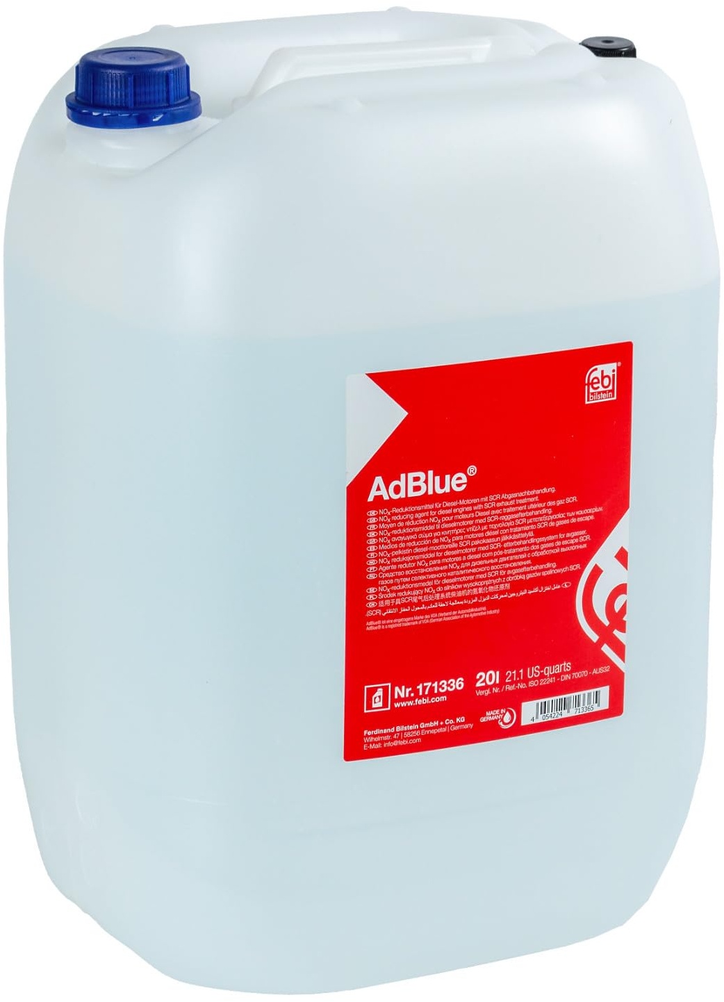 Kategorie: Additive - Eurolub - GTIN:4025377845203 - EUROLUB AdBlue Hochreine SCR Harnstofflösung - Hergestellt in Deutschland Zur Abgasnachbehandlung von Automobil-Dieselmotoren mit SCR-Technologie. Empfohlene Lagertemperatur zwischen 0 C und +30 C. Direkte Sonneneinstrahlung vermeiden. Verwendbar für: AUS 32 gem. ISO 22241 - 28,00 Euro bei Amazon Marketplace Automotive - gefunden von billiger.de Febi Bilstein ist ein renommierter Hersteller von Ersatzteilen und Betriebsflüssigkeiten, was für hohe Produktqualität spricht. ![]() ![]() febi bilstein 171336 AdBlue, 20 Liter