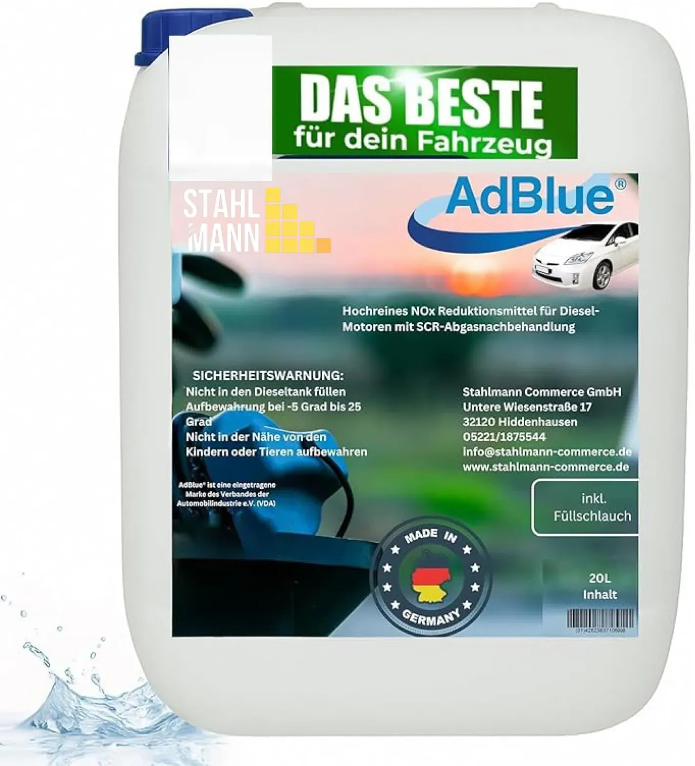 Verfügbarkeit: Auf Lager - Kategorie: Additive - Mannol - GTIN:4036021000558 - MANNOL 1 x 20L AdBlue/Diesel LKW u. PKW SCR Harnstofflösung (2,50€/L) - 21,95 Euro bei Amazon Marketplace Automotive - gefunden von billiger.de Das STAHLMANN AdBlue ist "Made in Germany" und erfüllt die ISO 22241 Norm, was für Qualität und Zuverlässigkeit spricht. ![]() ![]() STAHLMANN Adblue® 20 L [MADE IN GERMANY ] - Adblue® - Adblue® 20 L für diesel ISO 22241 €“ Adblue®(20 Liter)