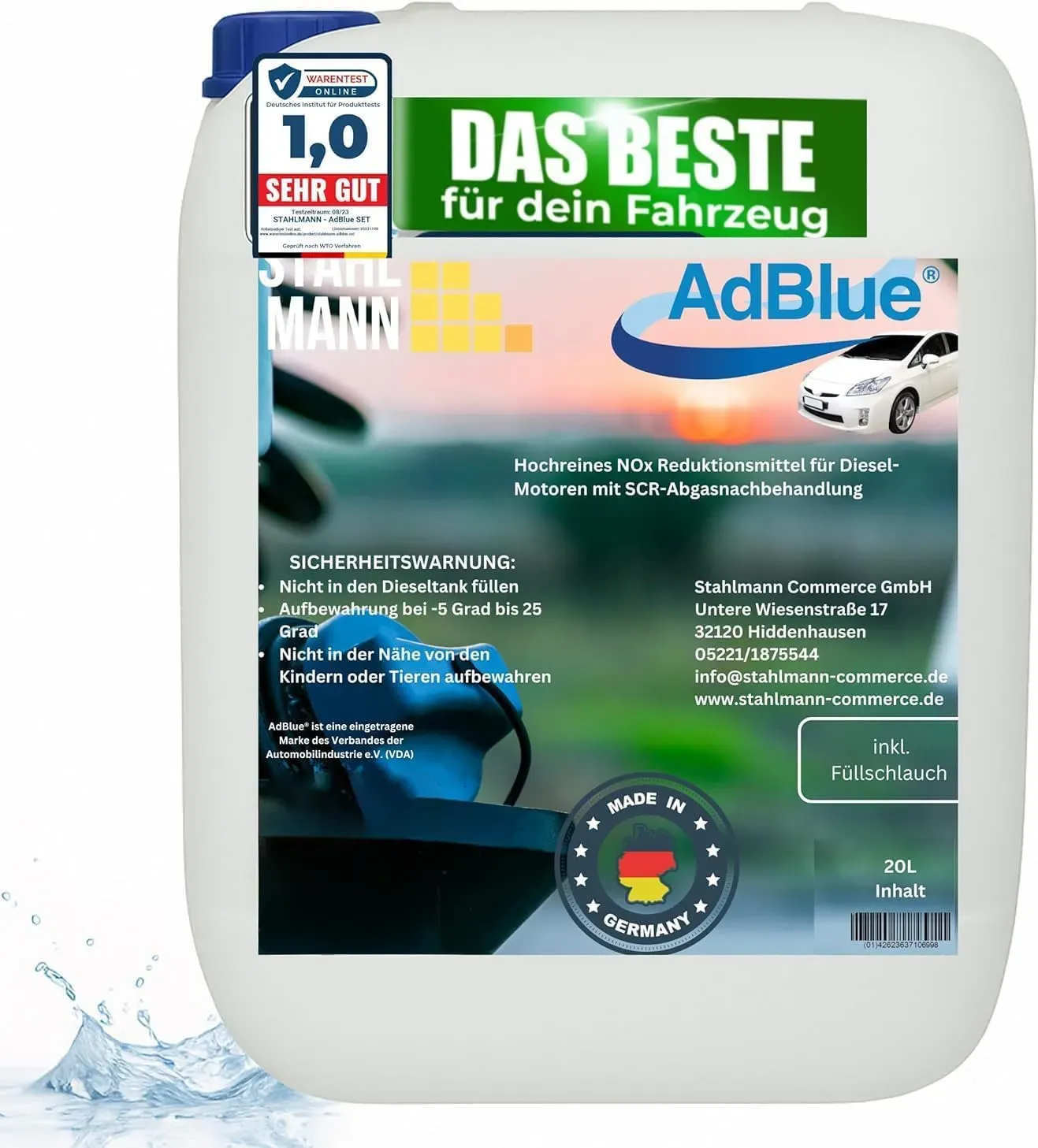 Zustand: Neu - Dieselkraftstoffadditive - ÙŽADWELLE GmbH Adwelle GmbH - 4270003952101 - - ADWELLE AdBlue 20L (2×10L) - VDA-Zertifiziert & Hergestellt in Deutschland. Höchste Qualität für Ihren Motor: Adwelle AdBlue wird in Deutschland nach höchsten Standards produziert und ist VDA-zertifiziert. Kompatibel mit Euro 4-6 Dieselfahrzeugen gemäß ISO 22241 und DIN 70070. Ideal für PKW, Transporter und LKW. Bis zu 90 % weniger Emissionen - Umweltfreundlich & effizient. Unsere AdBlue-Lösung mit 32,5 % hochwertigem Harnstoff und demineralisiertem Wasser reduziert schädliche Stickoxide (NOx) um bis zu 90 %. Perfekt für lange Strecken und professionelle Anwendungen. Sichere & saubere Anwendung - Mit praktischem Einfülladapter (je 10 Liter). Jeder robuste 10L-Kanister ist mit einem integrierten Ausgießer ausgestattet. Einfaches, sauberes und tropffreies Nachfüllen - ideal für den privaten und gewerblichen Einsatz. Reinheit ohne Kompromisse - Vollautomatisierte Produktion. Dank modernster vollautomatisierter Prozesse ist Adwelle AdBlue frei von Verunreinigungen und Metallrückständen. Schützt den SCR-Katalysator und trägt zur Langlebigkeit Ihres Motors bei. Kundenzufriedenheit rt - Ihre Sicherheit, unser Versprechen. Wir stehen zu unserer Qualität: mit kostenlosem Kundensupport und 100 % Zufriedenheits . Vertrauen Sie auf Adwelle - für eine sichere und saubere Fahrt. - Verkäufer: Adwelle GmbH im amazon.de Marketplace A&G-heute AdBlue für 26.85 Euro bietet ebenfalls eine 2x10 Liter Lösung mit Einfüllschlauch, was für eine einfache Anwendung spricht. ![]() ![]() A&G-heute AdBlue® 20l | 2X 10 Liter | Hochreine Harnstofflösung für SCR Abgasreduktion | ISO 22241 | Einfüllschlauch | Reduziert Stickoxidenabgabe | Alle Automarken