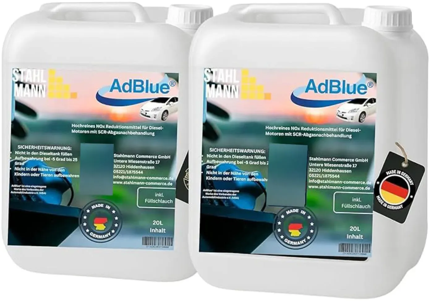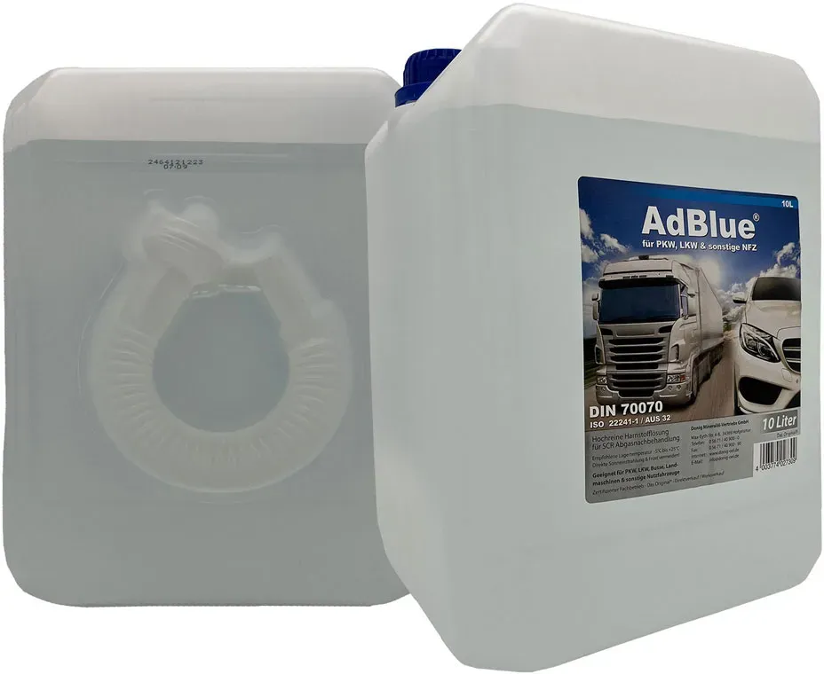 Kategorie: Additive - STAHLMANN - GTIN:4262363714352 - Made in Germany Unser AdBlue wird unter strengen Standards in Deutschland hergestellt . Die synthetisch produzierte Harnstofflösung reduziert den Ausstoß von schädlichen Stickoxiden um bis zu 90 %. Saubere und unkomplizierte Befüllung Die Befüllung gelingt mühelos und ohne Verschütten. Hochwertig und umweltfreundlich Die Qualität unseres AdBlue ist nach ISO 22240-1, DIN 70070 und AUS32 zertifiziert und wird vom Verband der Automobilindustrie empfohlen. Lange Haltbarkeit Bei einer empfohlenen Lagertemperatur von 10 Grad bleibt unser Diesel-Additiv bis zu 36 Monate stabil. Es schützt den Motor vor Verschleiß und verlängert die Lebensdauer Ihres Fahrzeugs. Verlässliche Qualität Als deutsche Marke stehen wir von STAHLMANN für erstklassige Produkte. Unser AdBlue bietet eine gleichbleibend hohe Leistung. - 21,97 Euro bei Amazon Marketplace Home - gefunden von billiger.de Dieses 2x10 Liter Kanister-Set von BAUER BLUE mit Flex-Ausgießer bietet eine gute Menge und einfache Handhabung. ![]() ![]() BAUER BLUE ? Adblue ? 2x10 Liter Kanister mit Flex-Ausgießer ? für Diesel Motoren ? Herstellung nach ISO 22241 ? Premium Harnstofflösung ? Made in Germany ? Optimale SCR-Abgasnachbehandlung