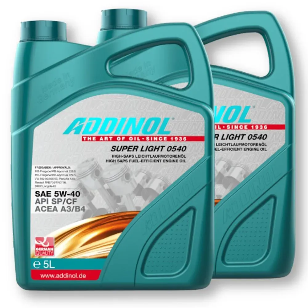 Kategorie: öle & Schmierstoffe - Addinol - GTIN:4014766241313 - ADDINOL SUPER LIGHT 0540 5L - 28,56 Euro bei shop.rhia.de - gefunden von billiger.de Ein sehr preiswertes 5-Liter-Angebot, das von mehreren Händlern auf Amazon angeboten wird und somit eine gute Verfügbarkeit und Wettbewerb verspricht. ![]() ![]() ADDINOL SUPER LIGHT 5W-40 A3/B4 Motorenöl, 5 Liter, Unbekannt