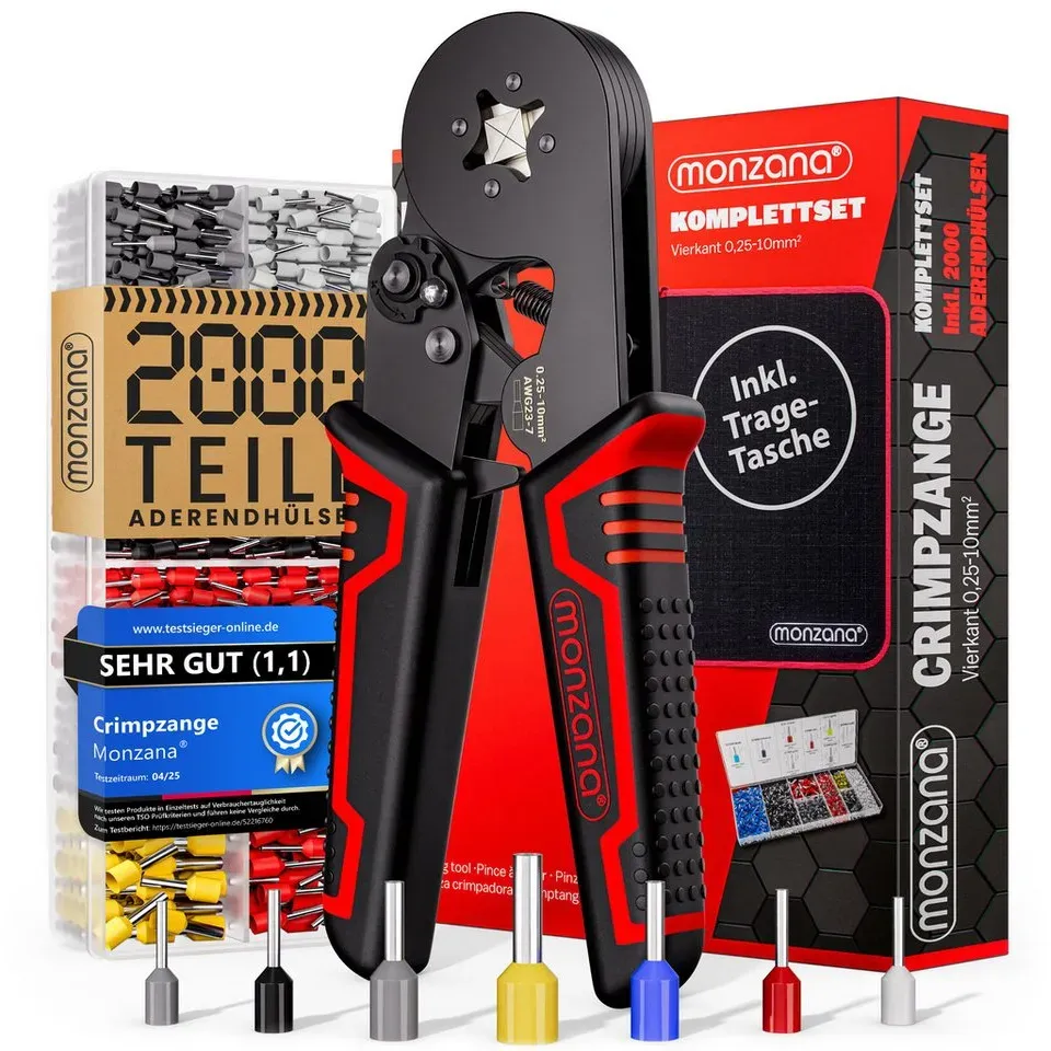 Kategorie: Zangen - RedStar24 - GTIN:4262390151595 - Die wichtigsten Fakten - Diese selbsteinstellende Crimpzange eignet sich ideal für die Verarbeitung sowohl isolierter als auch unisolierter Aderendhülsen. Sie bietet eine gleichmäßige Quadrat-Verpressung, was sie sowohl für Heimwerker als auch für Profis unverzichtbar macht. Selbsteinstellende Crimpzange - Dank ihrer Selbstjustierung verarbeitet die RedStar24 Crimpzange Aderendhülsen von 0,25 bis 10 mm2 mühelos. Ihr innovatives Presswerk passt sich automatisch an verschiedene Isolierhülsengrößen an. Gleichmäßige Vierkantverpressung - Die einzigartige Vierkantverpressung erzeugt durch gleichmäßigen Druck von allen vier Seiten eine extrem sichere und hochwertige Verbindung. Ihre Kabelenden sitzen fest und sicher. Ergonomischer Griff - Der ergonomische Griff mit Antirutsch-Beschichtung ermöglicht einen komfortablen, sicheren Halt und ist ideal für den täglichen Einsatz von Elektrikern konzipiert. Die geringe Griffweite erlaubt zudem eine mühelose einhändige Bedienung. Inklusive 1800 Aderendhülsen in einer Sortimentsbox - Im Lieferumfang enthalten ist eine praktische Sortimentsbox mit 1800 Aderendhülsen in den gängigsten Größen von 0,50 bis 10 mm2. Die robuste Box eignet sich hervorragend für die Aufbewahrung und den Transport der Hülsen. Zufriedenheits Falls unsere Crimpzange deine Erwartungen nicht erfüllt, kannst du sie problemlos zurückgeben und erhältst umgehend dein Geld zurück! - 19,46 Euro bei Amazon Marketplace ... ![]() ![]() Crimpzange Aderendhülsen - Set Presszange eBay Aderendhülsenzange Zangen 0,08-16mm²