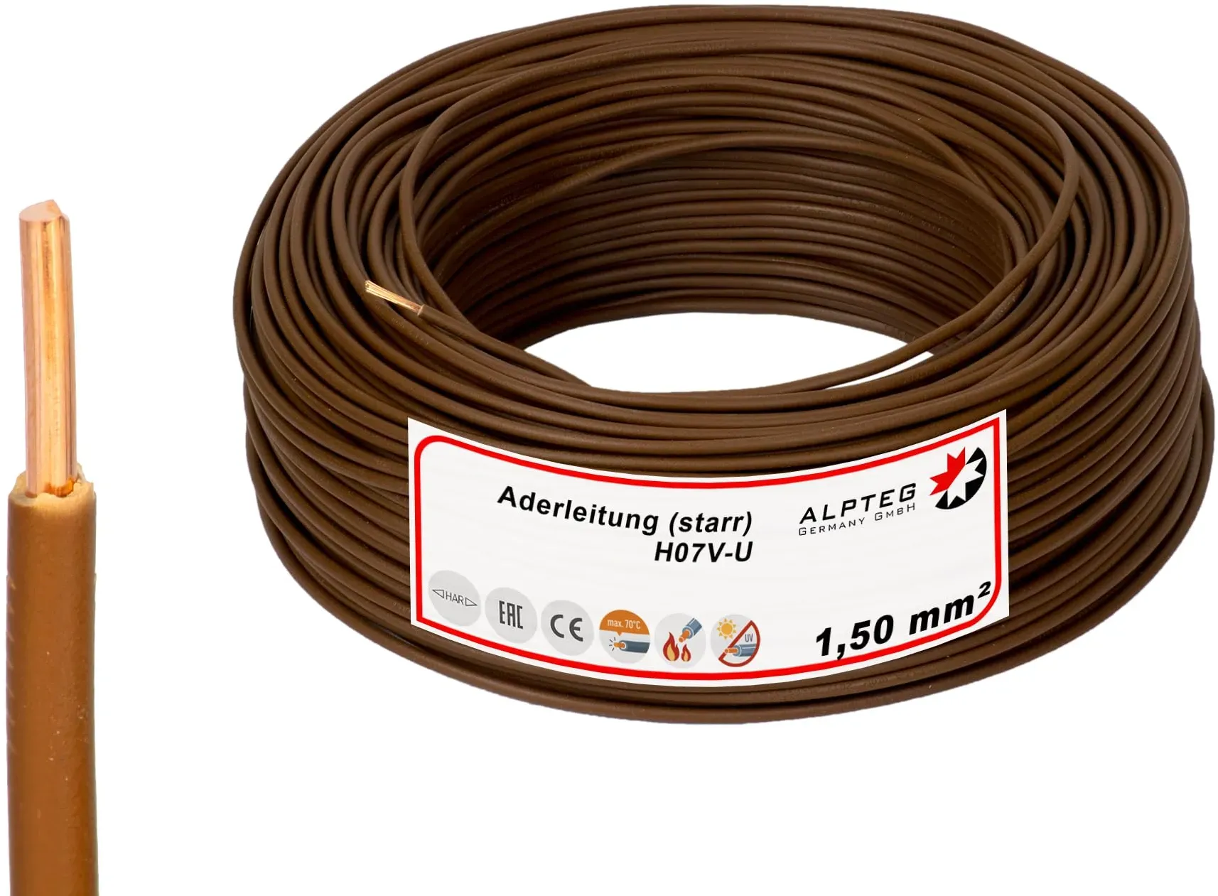 Verfügbarkeit: Sofort lieferbar - Kategorie: Kabel & Leitungen - diverse kabelhersteller - H07V-U 1,5 - PVC-AderleitungeindrähtigRing 100 MeterFarbe: violettnach DIN VDE 0281 Nennspannung: 450/750 V Aufbau: Kupferleiter blank, eindrähtig (massiv), PVC-Isolierung. Verwendung: Für die Verlegung in trockenen Räumen in Rohren auf, in und unter Putz sowie in geschlossenen Installationskanälen. Zur inneren Verdrahtung von Geräten, in Schaltanlagen und Verteilungen, sowie für geschützte Verlegung in und an Leuchten. zulässige Betriebstemperatur am Leiter +70°C - 29,22 Euro bei elektroversand-schmidt.de - gefunden von billiger.de Eine beliebte Wahl für 100m Aderleitung mit 1,5mm² Querschnitt in Braun, geeignet für allgemeine Verdrahtungsaufgaben. ![]() ![]() ALPTEG 100m H07V-U Aderleitung Einzelader Verdrahtungsleitung starr (100m - 1,5mm2 - Braun)