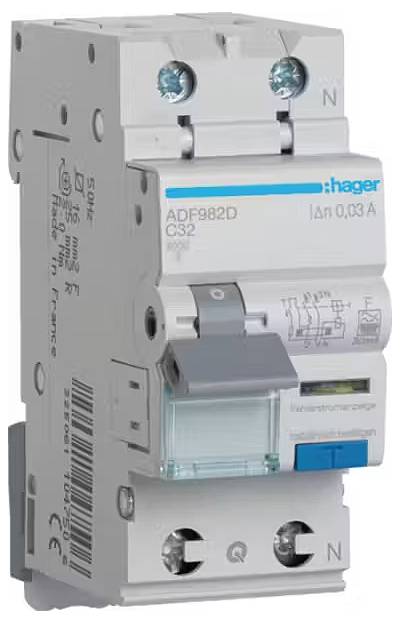 Hager - EAN: 3250611047520 - Fehlerstrom-Leitungsschutzschalter 1P+N 6kA C-32A 30mA Typ F QuickConnect - bei voelkner.de - aus Yadore Produktdaten ![]() ![]() Hager ADF982D FI-Schutzschalter/Leitungsschutzschalter 2polig 32 A 0.03 A 230 V