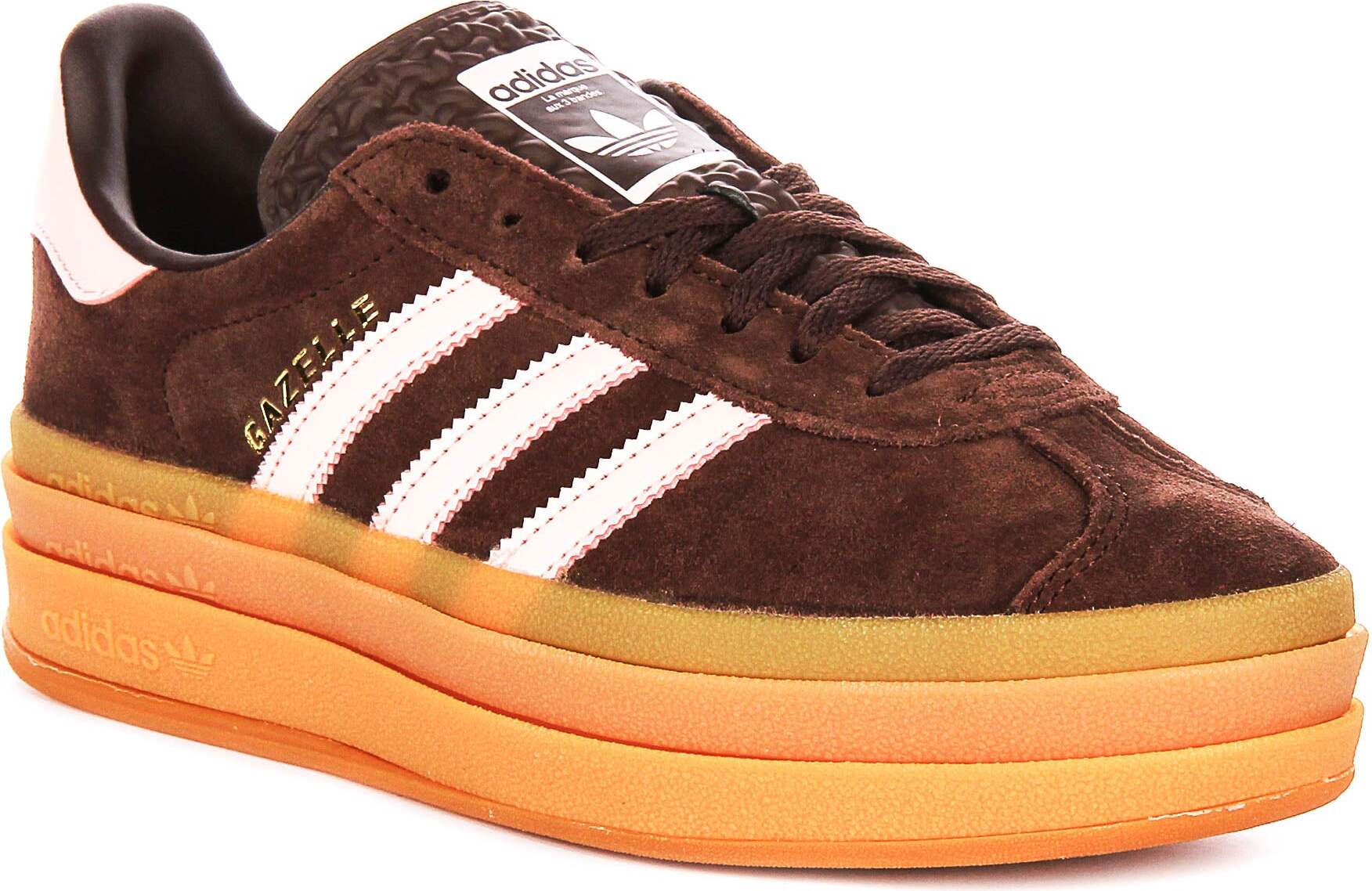 EAN: 4067898205333 - Die Adidas Gazelle Bold W ist ein stylisches und qualitativ hochwertiges Paar Sneakers, das speziell für Frauen entworfen wurde. Mit einer modernen Note des klassischen Gazelle-Silhouetten-Designs, besteht dieses Modell aus Wildleder als Außenmaterial, was ein weiches, s Gefühl vermittelt und gleichzeitig hervorragende Haltbarkeit bietet. Das schokoladenbraune Wildleder wird durch die ikonischen drei weißen Streifen von Adidas wunderschön ergänzt und verleiht eine zeitlose und vielseitige ästhetik, die sich gut mit einer Vielzahl von Outfits kombinieren lässt.Eines der herausragenden Merkmale dieses Sneakers ist die mutige, gestapelte Sohle, die dem Design eine einzigartige Note verleiht. Die Sohle in einem lebhaften Orangeton mit geschichteten Verzierungen verbessert nicht nur die ästhetische Anziehungskraft des Schuhs, sondern bietet auch eine bequeme, gepolsterte Basis für ganztägigen Tragekomfort. Die eingravierte Adidas-Branding entlang der Seite der Sohle fügt dezente, dennoch erkennbare Details hinzu, die das Erbe und die Qualität der Marke widerspiegeln.Die Zunge des Sneakers hat ein texturiertes Design mit dem prominent auf einem gewebten Etikett angezeigten Adidas-Logo, was zur Authentizität beiträgt. Das Innenfutter und der gepolsterte Kragen sorgen für eine enge, komfortable Passform, sodass Sie sie über längere Zeit tragen können, ohne dabei Unbehagen zu empfinden. Der kontrastierende hellrosa Fersenriegel verleiht einen femininen Akzent ... Für 79.99 Euro erhalten Sie hier eine auffällige Collegiate Red/Lucid Pink Variante, die ein Statement setzt. ![]() ![]() adidas Gazelle - Bold Collegiate eBay Red Lucid Pink (Women's)
