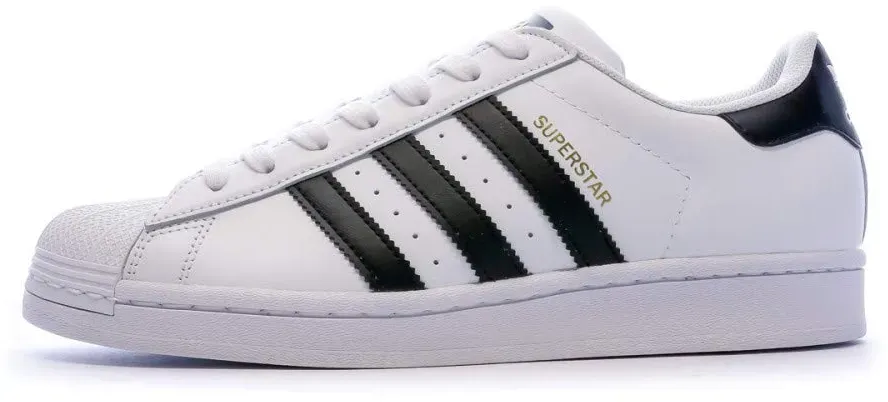 Verfügbarkeit: 3-6 Werktage - Kategorie: Sneaker - adidas - GTIN:4067898787389 - Der kultige adidas Superstar ist zurück. Tauche mit diesem Low-Top-Sneaker in 5 sportlichen Streetstyle ein. Das Obermaterial aus glattem Leder und die Zehenpartie aus Gummi erinnern an Basketballplätze und Stadtstraßen. Die gepolsterte Zunge und der gepolsterte Schaftrand bieten ganztägigen Tragekomfort, und die strukturierte Gummilaufsohle sorgt für Grip. Ob beim Basketball oder auf der Straße €“ der adidas Superstar besticht durch seinen vielseitigen Retro-Style und bringt dich klassisch ans Ziel.StandardpassformSchnürungObermaterial aus LederGepolsterte ZungeTextilfutterGummilaufsohleProduktfarbe: Cloud White / Core Black / Cloud White Der Adidas Superstar II Cloud White ist ein ikonischer Trainer, der klassischen Basketball-Stil mit modernem Komfort kombiniert. Ausgeführt in strahlend weißem Leder mit der Unterschrift Gummi Shell-Zehe, bietet dieser Trainer Haltbarkeit und einen zeitlosen Look. Die bequeme Einlegesohle und robuste Gummilaufsohle bieten optimalen Halt und Grip, ideal für den Alltag und einen lässigen Street-Style-Look. Die Adidas Superstar Sneaker für Herren haben folgende Eigenschaften: Diese Adidas Sneaker für Herren sind klassische Schuhe mit einem auffälligen Design und einer markanten Kappe. Spezifikationen: Passform: normale Passform; Schnürverschluss Obermaterial: Leder-Obermaterial Dämpfung: vorgeformte Einlegesohle Laufsohle: Gummilaufsohle ... Ein schwarzer Ledersneaker mit der ikonischen Shell-Zehenkappe, der Robustheit und Stil vereint. ![]() ![]() Adidas Superstar Schnürschuhe mit Shell Zehenkappe Herren Ledersneaker in Schwarz Weiß €“ 9.5 UK - 44 EU - 10 US / Black White - Schwarz - 44