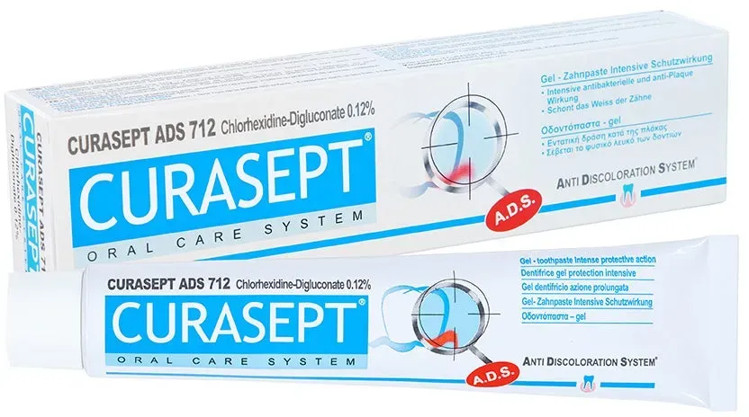 20 Händlerangebote bei billiger.de - Kategorie: Zahnpflegeartikel - Curaprox - Curasept Zahnpasta 0,12 % CHX ADS 712 intensive antibakterielle und anti-Plaque Wirkung Karies- & Plaque-Schutz Zahnfleischschutz schont das Weiß der Zähne Anti Discoloration System SLS frei für den täglichen Gebrauch Gel-Zahnpasta mit 0,12% Chlorhexidin Das patentierte ADS System reduziert das Risiko von Braunverfärbungen und eliminiert Geschmacksbeeinträchtigungen. Kein schmerzhaftes Brennen aufgrund alkoholfreier Formel. Die Curasept Zahnpasta 0,12 % CHX ADS 712 ist ideal für Prothesenträger und Personen mit kieferorthopädischen Apparaten, Implantaten und Zahnfleischproblemen. Die Verwendung der Gel-Zahnpasta ist optimal in Verbindung mit Curasept Mundspülungen. - GTIN:8056746070069 - PZN:16127978 ![]() ![]()