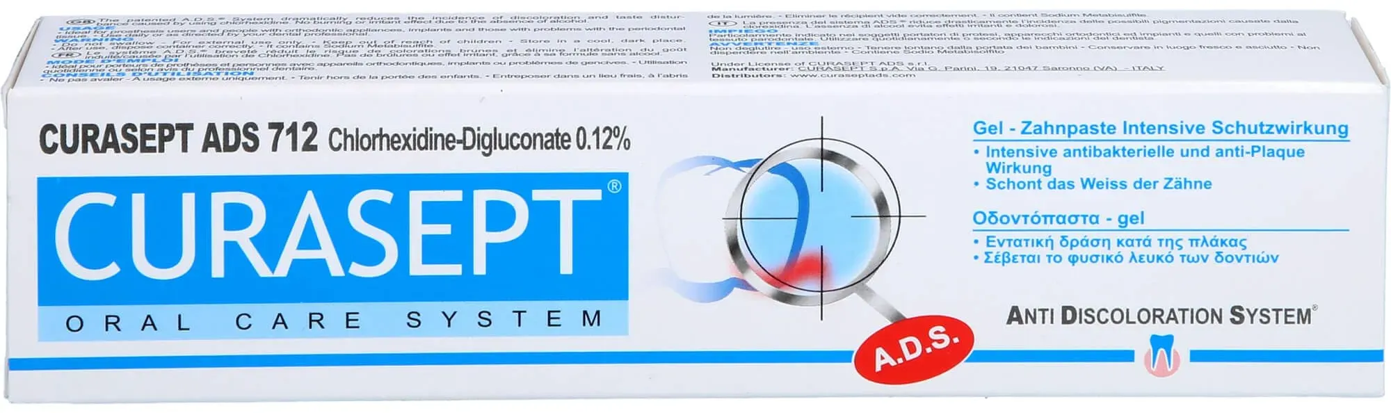 124,40 /l - Kategorie: Zahnpflegeartikel - Curaprox - GTIN:8056746070069 - PZN:16127978 - Curasept Zahnpasta 0,12% CHX ADS 712 75 ml von Xaradent GmbH günstig bei Ihrer Beraterapotheke bestellen - 9,33 Euro bei Beraterapotheke - gefunden von billiger.de ![]() ![]() CURASEPT Zahnpasta - 0,12% CHX eBay ADS 712 75 ml PZN16127978