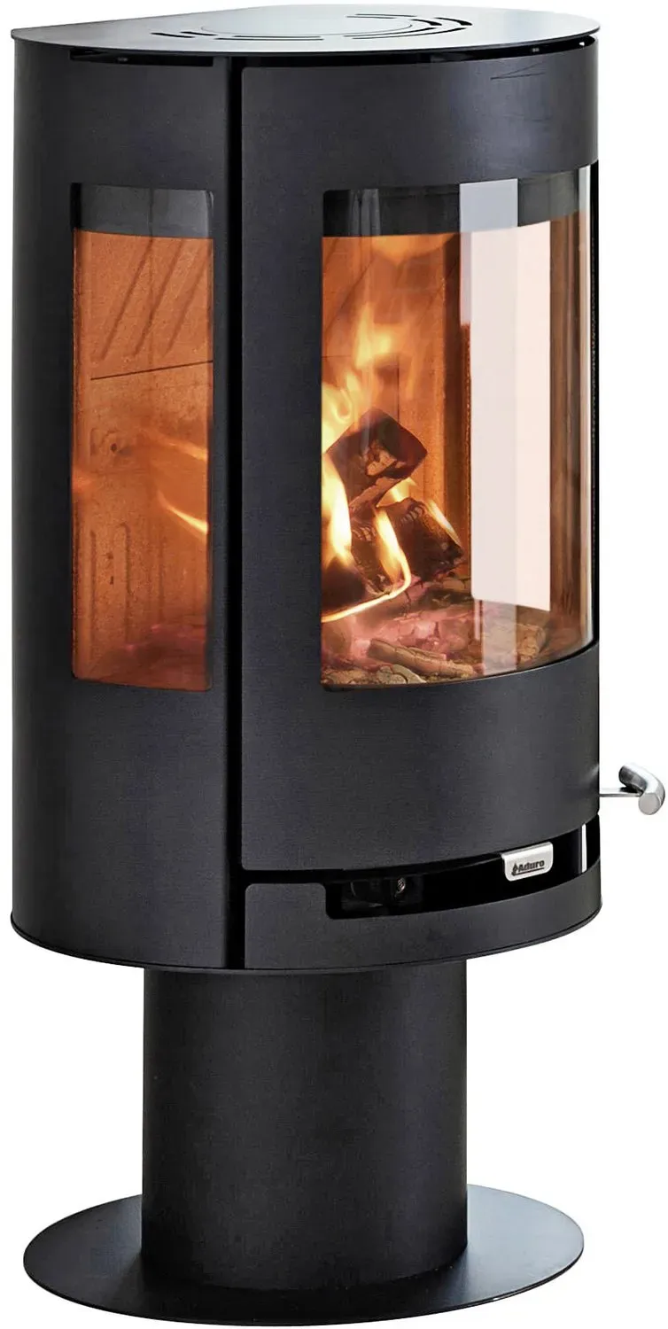 EEK: A+ - Kategorie: Kamine & öfen - ADURO - GTIN:5704065004472 - Der Kaminofen Aduro 9-3 von Aduro beeindruckt mit einzigartigem Design und großen Glasflächen. Der schlanke Sockel verleiht dem Ofen ein besonders elegantes Erscheinungsbild und setzt zugleich Brennraum und Flammen gekonnt in Szene. Die 3-seitige Verglasung eröffnet neue Blickwinkel, macht das Kaminfeuer räumlicher und zu einem faszinierenden Erlebnis. Mit einer effektiven Scheibenspülung, bei der Luft vor dem Glas hinab geleitet wird, wird Scheibenruß effektiv vermieden. Die Funktionalität wird zusätzlich durch die einzigartige Aduro-tronic unterstützt. Durch einen einfachen Zug am Hebel wird die automatische Regelung der primären Luftzufuhr gesichert und ein bis zu 40 % geringerer Brennstoffverbrauch erzielt. # Zeitbrand Lebendiges Feuer und schnelle Wärme Ein Zeitbrandofen ist darauf ausgelegt, mit Holzscheiten ein lebhaftes und intensives Flammenspiel zu erzeugen. Er gibt die Wärme schnell an den Raum ab und sorgt im Handumdrehen für eine gemütliche Atmosphäre. Nach dem Abbrennen des Holzes muss für eine fortgesetzte Wärmeabgabe neuer Brennstoff nachgelegt werden. # Scheibenspülung Immer freie Sicht auf das Feuer Damit Sie das faszinierende Flammenspiel ungestört genießen können, sorgt eine integrierte Scheibenspülung für eine saubere Sichtscheibe. Ein gezielt geführter Luftstrom bildet einen Schutzfilm an der Innenseite des Glases. Dieser verhindert wirkungsvoll, dass sich Ruß und Schmutzpartikel ... Der ADURO Kaminofen 9.3 schwarz ist eine gute Wahl für alle, die ein Modell mit dreiseitiger Verglasung und guter Heizleistung suchen. ![]() ![]() ADURO Kaminofen 9.3 schwarz