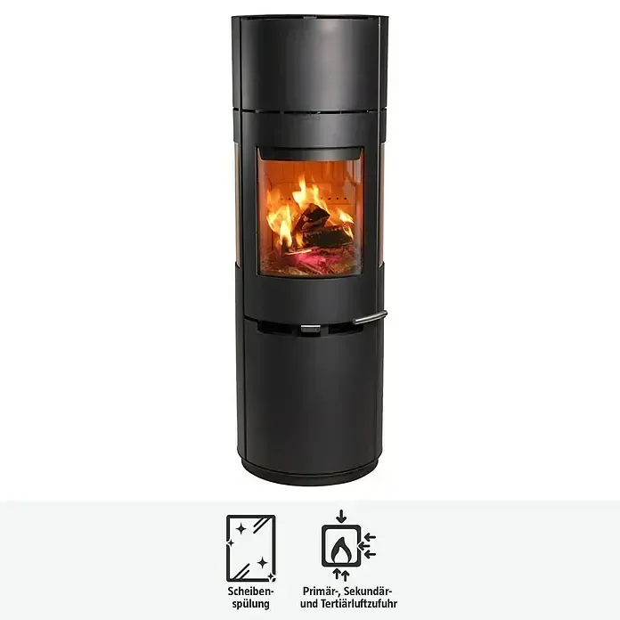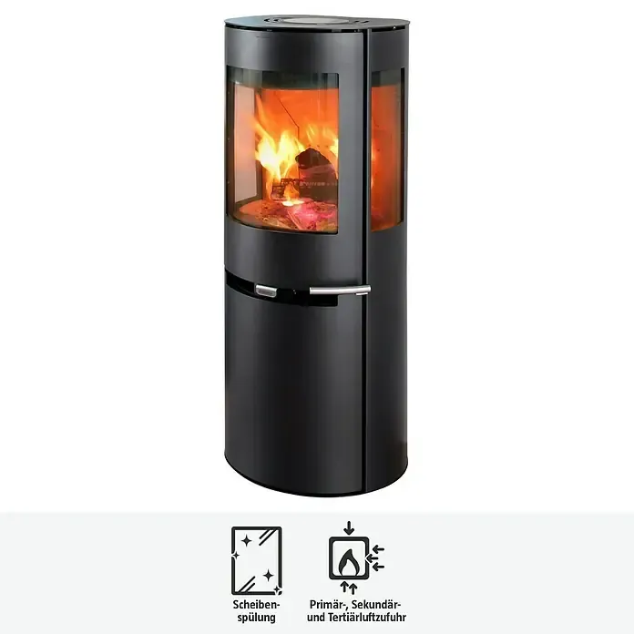 EEK: A+ - Kategorie: Kamine & öfen - ADURO - GTIN:5704065003406 - Aduro-Tronic für verbesserte Luftzufuhr und Verbrennung|effektive Scheibenspülung gegen Rußbildung auf dem Glas|reduzierter Holzverbrauch durch automatische Luftzufuhr|effizienter Betrieb dank saubererer Verbrennung|praktische Schublade mit zusätzlichen Stauraum für Holz; Der Kaminofen '9' lässt niemanden kalt. In Windeseile verwandelt dieser Hingucker deine Räumlichkeiten in eine warme Wohlfühloase. Du kannst ihn über 24 Stunden hinweg stetig mit Scheitholz und Braunkohlebriketts betreiben. Der Wirkungsgrad beträgt 81,3 %. Dabei hat er eine Nennwärmeleistung von 6 kW und ein Raumheizvermögen von 336 m3. Die integrierte Automatikregelung gewährleistet nicht nur eine gleichmäßige Wärmeentwicklung, sondern auch einen reduzierten Verbrauch von Brennstoff. Der Zeitbrandofen hält die Glut mit dem passenden Brennstoff mindestens 45 Minuten lang. Sein Brennraum mit den Maßen von 40 x 95,8 x 33 cm ist mit hitzebeständigem Vermiculite ausgekleidet. Dadurch werden nicht nur eine gute Leistungsausbeute sowie eine hohe Temperatur erreicht, sondern zusätzlich der Ausstoß von Emissionen verringert. Der Heizprofi ist 50 cm breit, 95,8 cm hoch und 44,7 cm tief. Vor dem Kauf eines Kaminofens solltest du dich von Fachleuten, z.B. von dem oder der zuständigen Schornsteinfegermeister oder Schornsteinfegermeisterin, beraten lassen. Nur sie können den Schornstein vor dem Einbau der Feuerstelle auf Verwendbarkeit überprüfen. ... Der Aduro Kaminofen 9-1 ist ein beliebtes Modell, das ein gutes Preis-Leistungs-Verhältnis bietet und für viele Haushalte geeignet ist. ![]() ![]() Aduro Kaminofen 9-1 (3 kW - 9 kW, Raumheizvermögen: 334 m3, Material Verkleidung: Stahl, Schwarz)