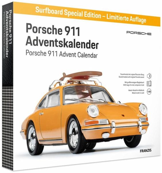 Der angezeigte Preis könnte seit dem letzten Update gestiegen sein - EAN: 4020972102157 - Small foot 10215 - Adventskalender Wintertraum mit Beleuchtung, Holz, 34x52x7,5 cm - Spielware Dieser Adventskalender stimmt auf die Adventszeit ein. Lampe und Häuser sind mit LEDs ausgestattet und werden mit zwei Batterien betrieben. Die filigranen... - Zustand: NEW - bei Buecher.de - gefunden von Buycentral Für Liebhaber von Modellbau und Automobilgeschichte ist dieser Porsche 911 Adventskalender eine besondere und hochwertige Wahl. ![]() FRANZIS 67299 - Porsche 911 Surfbrett Bahamagelb Adventskalender
