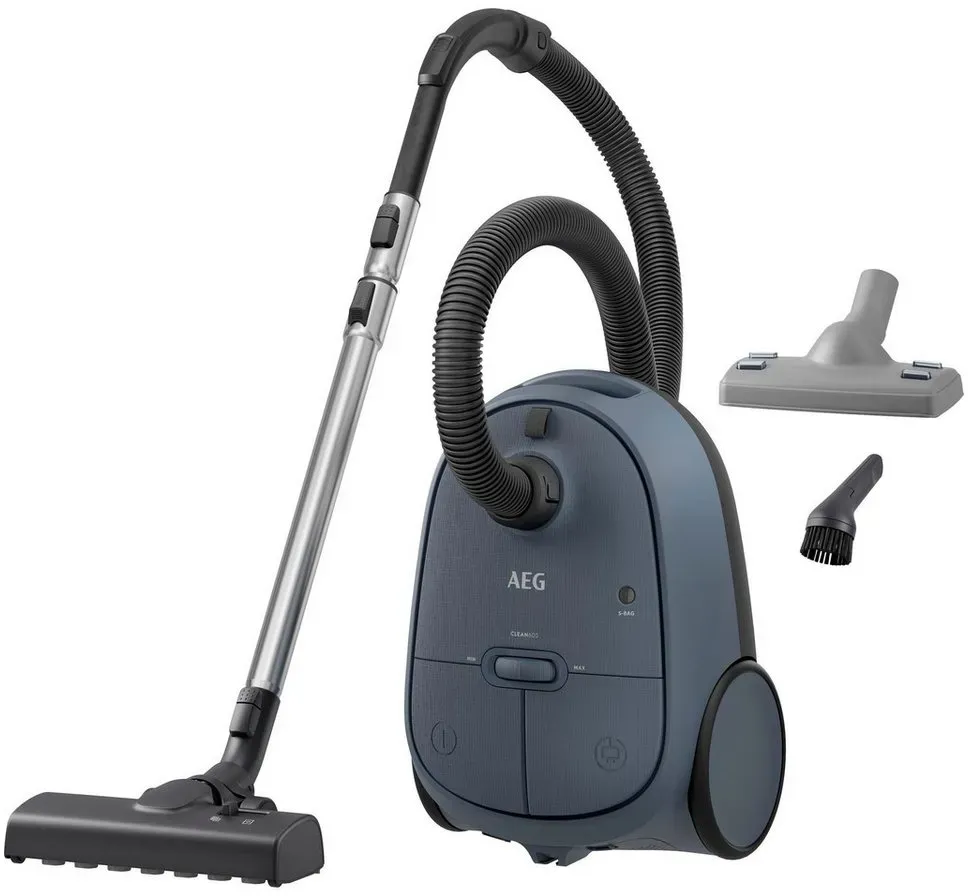 Auf Lager Versand durch AmazonAEG CLEAN 6000 Staubsauger mit Beutel, Hohe Saugleistung, inkl. Zusatzdüsen, 55 % Recyclingkunststoff, für Haustierbesitzer, Reinigen von Polstern, 12 m Aktionsradius, 850 W, Blau, AB61C2DBS