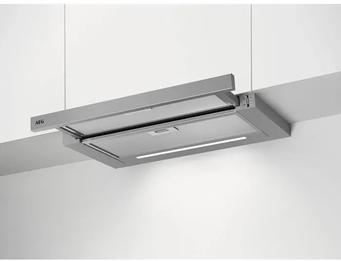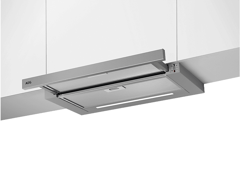 EEK: A - Kategorie: Dunstabzugshauben - AEG - GTIN:7332543805822 - Die Flachschirmhaube DPS5650AM von AEG ist die perfekte Wahl, wenn Sie ein beschränktes Platzangebot haben und die Dunstabzugshaube in Ihren Küchenschrank einbauen möchten diskret und sehr leistungsfähig zugleich. Volle Kopffreiheit: Keine Einschränkungen beim Kochen. Die Steuerung des Gebläses kann über den Auszug des Wrasenschirms erfolgen nur 5 cm reichen und schon startet die Absaugleistung. So erhalten Sie auch im Betriebsmodus ausreichend Kopffreiheit zum Kochen. Metall-Fettfilter: Für stets saubere Luft. Der hocheffiziente Fettfilter nimmt beim Kochen Fette und Dünste aus dem Kochdunst auf. Für eine leichte Reinigung kann dieser sogar in den Geschirrspüler gegeben werden. LED-Sättigungsanzeige: Signalisiert Filterreinigung oder -ersatz. Metallfettfilter müssen in bestimmten Intervallen gereinigt werden, um nicht an Leistung zu verlieren. Wann es soweit ist signalisiert die Sättigungsanzeige der DPS5650AM indem ein LED auf der Blende anfängt zu blinken. Hochleistungsmotor: Für schneller stets saubere Luft. Die Dunstabzugshaube DPS5650AM ist mit einem Highperformance-Motor der neuesten Generation ausgestattet. Kochgerüche und Dünste werden mittels dreier Leistungsstufen und einer Intensivstufe besonders schnell und damit effizient entfernt. PerfectFit: Reibungslose Best-in-Class-Montage. PerfectFit von AEG setzt Standards bei der schnellen und unkomplizierten Installation von Dunstabzugshauben. Mit ... ![]() ![]() AEG DPS5650AM, Dunstabzugshaube (598 mm breit, 300 tief)