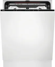 AEG - EAN: 7333394110103 - AEG Geschirrspüler der Serie 5000 mit AirDry Die Tür der Geschirrspüler der Serie 5000 mit AirDry öffnet sich automatisch am Ende der Trocknungsphase, um das Geschirr natürlich und effektiv zu trocknen. AirDry bietet eine dreimal bessere Leistung als Systeme mit geschlossener Tür. AirDry: Kein Nachtrocknen In den letzten 10 Minuten der Abschlussphase des Spülgangs öffnet sich die Tür einen Spalt weit von selbst. Aufgrund des dadurch entstehenden natürlichen Luftstroms trocknet das Geschirr fleckenfrei. Nach Abschluss des Programms kann somit alles ohne aufwändiges Nachtrocknen ausgeräumt werden. MaxiFlex Besteckschublade: Ideal für sperrige Küchenutensilien. Die flexible Besteckschublade bietet ausreichend Platz, selbst für sperrige Küchenhelfer. Die Icons auf der Schublade helfen dir beim Einsortieren. So findet jedes Teil den passenden Platz und kann effektiv gereinigt werden - vom Suppenschöpfer bis hin zum Brotmesser. BeamOnFloor: Auf einen Blick informiert. Während das Spülprogramm läuft, wird ein roter Punkt auf den Boden projiziert. Sobald das Programm abgeschlossen ist, erscheint der Punkt in grüner Farbe. So weißt du immer, ob der Spülgang fertig ist, auch wenn du ein besonders leises Spülprogramm gewählt hast. QuickLift: Höhenverstellbarer Oberkorb. Wenn du einmal mehr Platz für sperriges Geschirr, zum Beispiel für Töpfe oder eine Salatschüssel benötigst, kann die Höhe des Oberkorbes an größere Gegenstände angepasst werden - das geht ... ![]() ![]() AEG Favorit FSE7674XP Vollintegrierbarer 60 cm Geschirrspüler