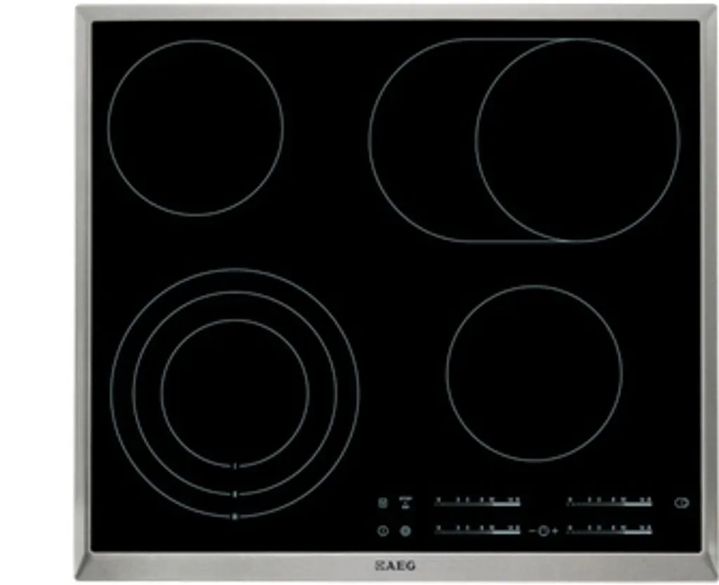 Auf Lager Versand durch AmazonAEG Glaskeramik-Kochfeld Autark 60cm, 4 Zonen mit Bräter- und Zweikreiskochzone, 14 Stufen, Edelstahlrahmen, Timer, Touch-Bedienung je Zone, Kindersicherung, TN64RA06XB
