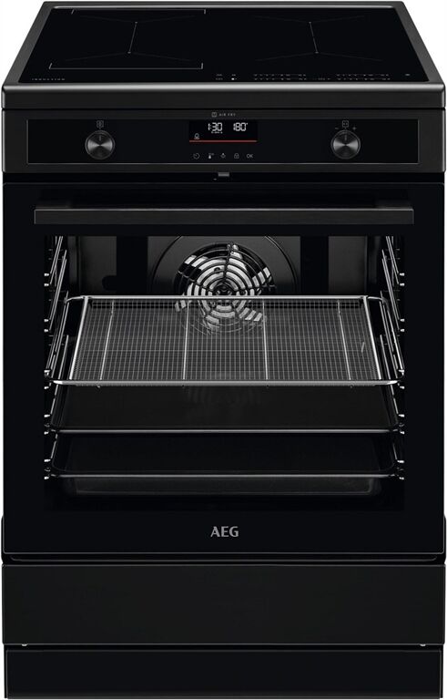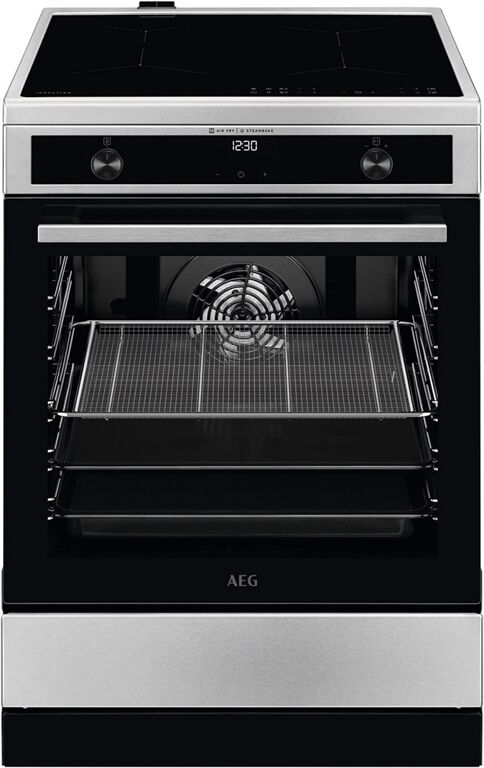 AEG - EAN: 7333394070995 - Präzises Erhitzen. Für perfektes Kochen Das Induktionskochfeld heizt schneller auf als andere Kochfelder. Es bringt Wasser schneller zum Kochen, und die Temperaturregelung ist so fein einstellbar, dass du selbst die raffiniertesten und anspruchsvollsten Gerichte mit Leichtigkeit zubereiten kannst. Induktionskochfeld. Eine kühlere Oberfläche für eine sicherere Küche Die intelligente Induktionstechnologie erhitzt das Kochgeschirr und die Lebensmittel darin - sonst nichts. Die Oberfläche um das Kochgeschirr herum bleibt kühl. Wenn du während des Kochens versehentlich das Kochfeld in der Nähe des Kochgeschirrs berührst, bleiben deine Finger unversehrt. SteamBake: Feuchtigkeitszugabe für optimale Backergebnisse Durch Aktivierung der SteamBake-Funktion und der Zugabe von 250 ml Wasser in die speziell beheizte Vertiefung im Backofenboden gibt dein AEG SteamBake Backofen während des Backvorgangs Feuchtigkeit in den Garraum ab. Der Teig geht besser auf und dein Gebäck wird knuspriger, saftiger und fluffiger. Köstlich knusprige Ergebnisse mit dem AirFry Backrost Genieße knusprige und köstliche Speisen mit weniger öl dank dem AirFry Backrost. Die spezielle Beschaffenheit des Backrosts ermöglicht eine optimale Zirkulation der Heißluft. Deine Gerichte werden von allen Seiten gleichmäßig gegart, außen knusprig gebacken und bleiben innen saftig zart. Multilevel Cooking. Selbe Back- und Garergebnise auf allen Ebenen. Multilevel Cooking mit zusätzlichem ... ![]() ![]() AEG CIB6643BBM (edelstahl) Stand-Elektroherd mit Induktionsfeld