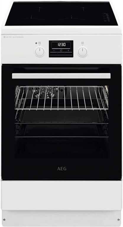 AEG - EAN: 7333394070988 - Präzises Erhitzen. Für perfektes Kochen Das Induktionskochfeld heizt schneller auf als andere Kochfelder. Es bringt Wasser schneller zum Kochen, und die Temperaturregelung ist so fein einstellbar, dass du selbst die raffiniertesten und anspruchsvollsten Gerichte mit Leichtigkeit zubereiten kannst. Induktionskochfeld. Eine kühlere Oberfläche für eine sicherere Küche Die intelligente Induktionstechnologie erhitzt das Kochgeschirr und die Lebensmittel darin - sonst nichts. Die Oberfläche um das Kochgeschirr herum bleibt kühl. Wenn du während des Kochens versehentlich das Kochfeld in der Nähe des Kochgeschirrs berührst, bleiben deine Finger unversehrt. SteamBake: Feuchtigkeitszugabe für optimale Backergebnisse Durch Aktivierung der SteamBake-Funktion und der Zugabe von 250 ml Wasser in die speziell beheizte Vertiefung im Backofenboden gibt dein AEG SteamBake Backofen während des Backvorgangs Feuchtigkeit in den Garraum ab. Der Teig geht besser auf und dein Gebäck wird knuspriger, saftiger und fluffiger. Köstlich knusprige Ergebnisse mit dem AirFry Backrost Genieße knusprige und köstliche Speisen mit weniger öl dank dem AirFry Backrost. Die spezielle Beschaffenheit des Backrosts ermöglicht eine optimale Zirkulation der Heißluft. Deine Gerichte werden von allen Seiten gleichmäßig gegart, außen knusprig gebacken und bleiben innen saftig zart. Multilevel Cooking. Selbe Back- und Garergebnise auf allen Ebenen. Multilevel Cooking mit zusätzlichem ... ![]() ![]() AEG CIB56494BW (weiss) Stand-Elektroherd mit Induktionsfeld