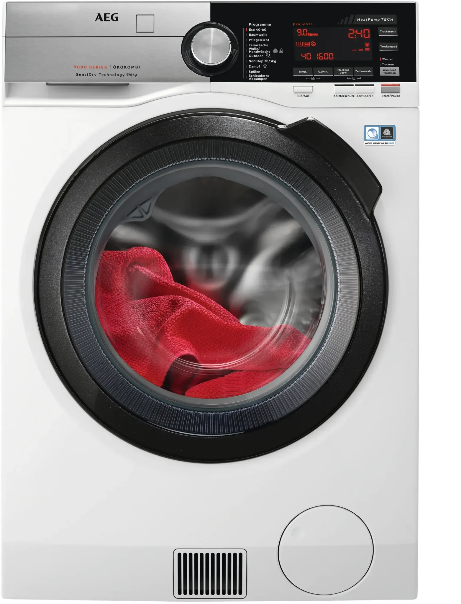 Zustand: Neu - Waschtrockner - AEG Electrolux - L9WEF80690 914600367 914 600 367 - EAN: 7332543805877 - Der Waschtrockner wurde von der Stiftung Warentest als TESTSIEGER mit der Note 2,0 ausgezeichnet (Ausgabe 11/2023 - Lizenz-Nummer 23XT01) AEG Waschtrockner der Serie 9000 mit AbsoluteCare System - Die 9000 AbsoluteCare Waschtrockner mit Wärmepumpentechnologie steuern die Trommelbewegung und -temperatur präzise, wodurch Wolle nicht einläuft und Seide ideal in Form bleibt; Das AbsoluteCare-System reaktiviert zudem die Imprägnierung deiner Outdoor-Kleidung und wurde mit der Woolmark Blue Zertifizierung ausgezeichnet Bis zu 55 % Energieersparnis* - Die energiesparende SensiDry-Wärmepumpentechnologie nutzt präzise Sensoren, die für gleichmäßige Trockenergebnisse sorgen - bei halber Temperatur*; Ihre Textilien werden geschont und Sie sparen bis zu 55 %*** Energie 96 % weniger Wasserverbrauch* - Mit dem Dampf-Programm erhältst du das Frisch-Gewaschen-Gefühl in 25 Min; Gerüche werden neutralisiert und vorhandene Falten reduziert; Das spart dir und der Umwelt die Zeit & Energie eines vollständigen Waschgangs und benötigt dabei nur 2 L Wasser; *Interner Test mit 1 kg Wäsche im Dampf-Programm vs. Feinwäscheprogramm 3 kg Wäsche in 3 Stunden - Das NonStop-Komplettprogramm 3h/3kg dient zum Waschen und Trocknen von bis zu 3 kg Wäsche in einem Durchgang - für ein effizientes und schnelles Waschen und Trocknen; Ganz egal ob 30, 40 oder 60 °C - ein Alltags-Programm für normale verschmutzte ... ![]() AEG L9WEF80690 Serie 9000 mit SensiDry Wärmepumpen-Technologie Waschtrockner (9 kg / 6 kg, 1551 U/Min.)