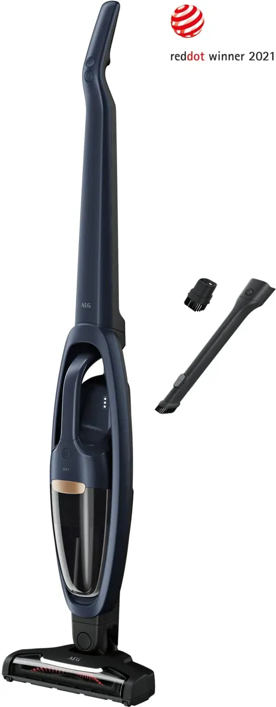 Auf Lager Versand durch AmazonAEG 2in1 Akku Staubsauger, schlanke Bauform, Multi-Bodendüse, PetPro-Elektrosaugbürste, Tiefenreinigung, bis zu 50 min Laufzeit, 21,6 Volt, inkl. Zubehör, freistehend, Hygienefilter, blau, QX7-1-I360