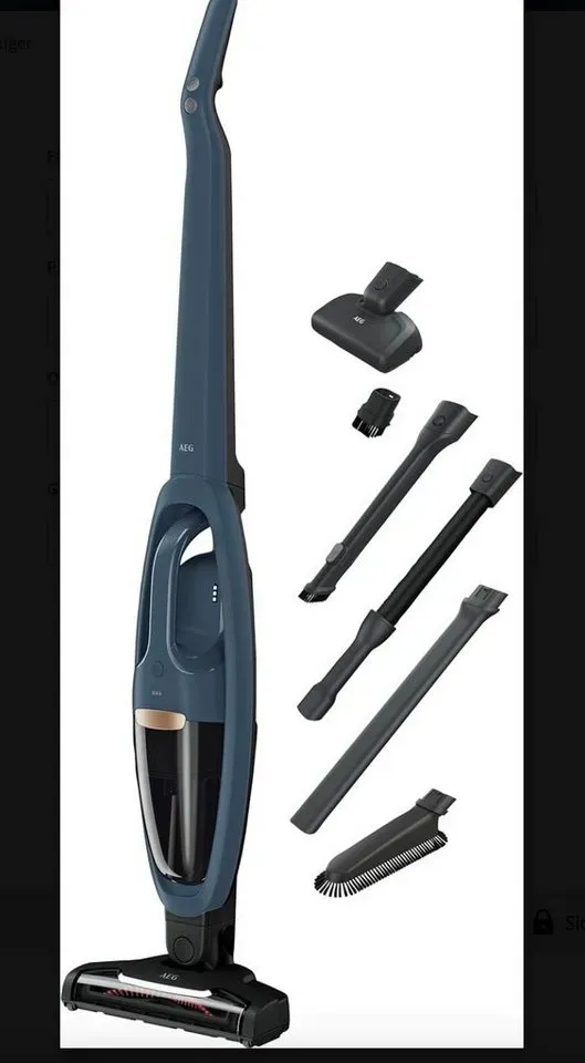 7 Händlerangebote bei billiger.de - Kategorie: Staubsauger - AEG - 2IN1 DESIGN - Fügt sich in jedes Wohnambiente ein €“ ergonomischer Schwerpunkt im unteren Bereich €“ schlanke Bauform, kommt auch unter flache Möbel €“ integrierter Handstaubsauger für noch mehr Flexibilität im ganzen Haus KRAFTVOLL - Einfache Reinigung (mehr Infos in den Videos) - Multi-Bodendüse mit LED-Frontlicht €“ für alle Bodenbeläge, entfernt Verschmutzungen hochwirksam aus Teppichen €“ Selbstreinigung der Bürstenrolle per Pedaldruck - freistehende Parkfunktion KONSTANT HOHE SAUGKRAFT - bis zu 50 min Laufzeit im Eco-Modus (14 Minuten im Power-Modus) €“ 21,6 V Lithium HD-Power-Akku €“ optimierter Luftstrom dank Cyclone-Technologie €“ 5-stufiges Filtersystem VIELSEITIGE ANWENDUNGSMöGLICHKEITEN - Leicht entnehmbarer Handstaubsauger, lässt sich mit umfangreichem Zubehör kombinieren - integrierte Teleskop-Fugendüse auf der Geräterückseite für schwer zugängliche Bereiche LIEFERUMFANG - 1x QX7, 1x integrierte Fugendüse und Möbelpinsel, 1x Teleskop-Fugendüse, 1x Flexibler Saugschlauch, 1x Möbelbürste, 1x Ladestation // Zubehör-Empfehlung: Erweiterungsset AKIT21, Power-Softrolle AZE137, Filter-Set ASKW1 - GTIN:7332543986606 Ein günstiges Angebot für den AEG QX7-1-I360 Akku-Staubsauger, der eine gute Leistung für den Preis bietet. ![]() ![]() AEG QX7-1-I360 - Akku Staubsauger eBay kabellos 2in1 Handstaubsauger Denim Blue 21,6V