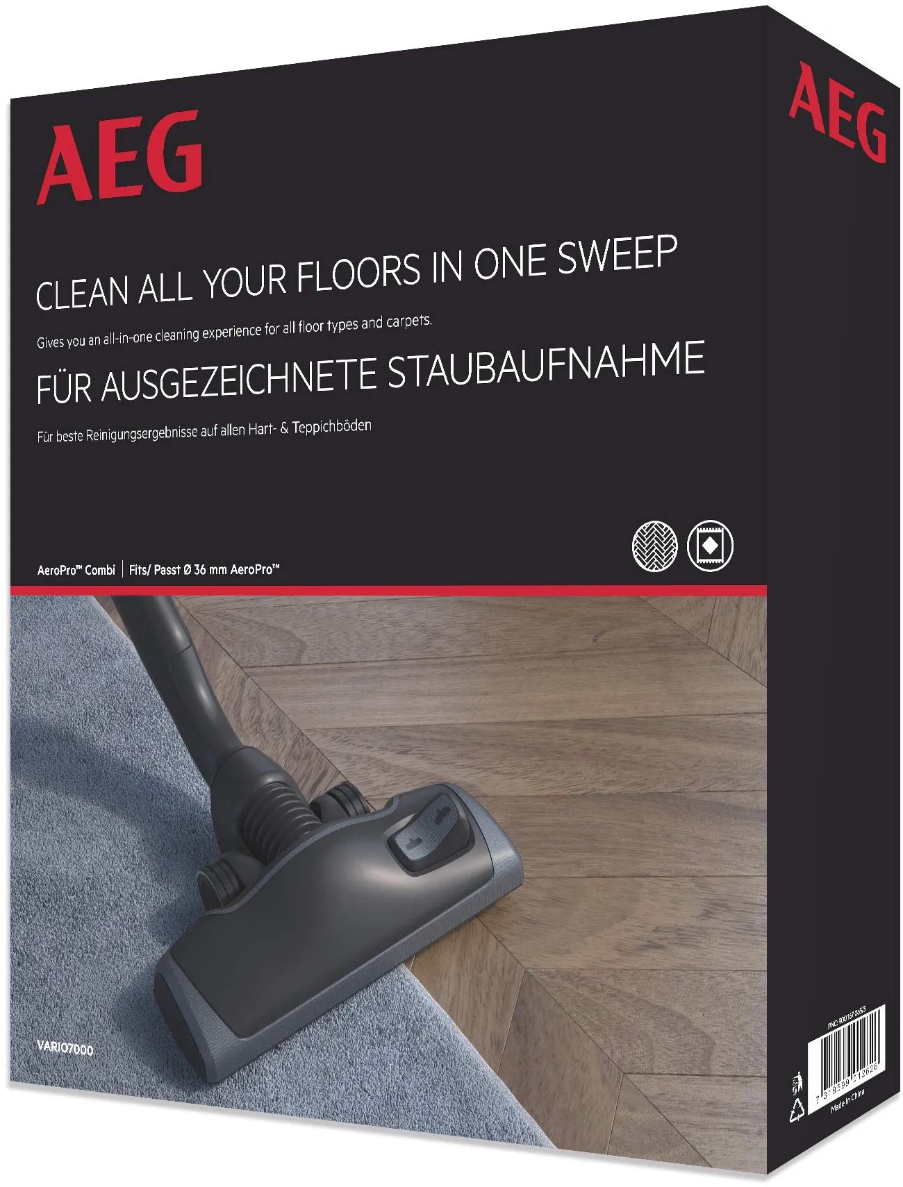 keine Angabe Gewöhnlich versandfertig in 3 bis 4 TagenAEG Vario 7000 AeroPro Kombidüse (für Teppich und Hartboden, top Saugleistung, optimale Staubaufnahme, extra leise, wendig, mit Parkfunktion, für alle Sauger mit 36 mm Ovalrohr, schwarz)