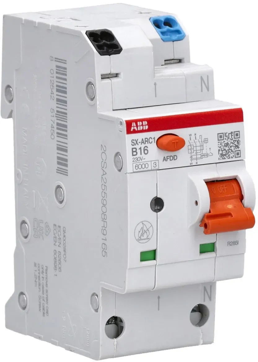 Arbeitskleidung & Arbeitsschutz Sicherheitskleidung & Ausrüstung - EAN:3250611012665 - Eigenschaften: Fehlerlichtbogen-Schutzeinrichtung AFDD mit LS-Schalter 1P+N 6kA B-16A 2M. AFDD nach DIN EN 62606 (VDE 0665-10), kombiniert mit Leitungsschutzschalter 1P+N, mit elektronischer Differenzstrom-Messung (300 mA) zur Erhöhung des Brandschutzes in nicht mit RCD geschützen Stromkreise, mit QuickConnect Klemme nach DIN EN 60898-1 (VDE 0641-11), blaue Test-Taste für die AFD-Einheit mit Fehlerlichtbogenanzeige. Einfache Einzelentnahme aus dem Phasenschienenverbund. Geeignet zum nachträglichen Anbau von Zusatzeinrichtungen. Beschriftungsmöglichkeit direkt am Gerät (ARC916D) - gefunden von Kelkoo Dieser ABB Fehlerlichtbogen-Schutzeinrichtung ist mit 130.26 Euro eine robuste Lösung mit 16A C-Charakteristik und integriertem Leitungsschutz. ![]() ![]() ABB S-ARC1 C16 AFDD + LS €“ Fehlerlichtbogen-Schutzeinrichtung 16 A, C-Charakteristik, 1P+N, 6 kA, 2TE, Brandschutzschalter mit Leitungsschutz für Hutschiene 2CSA255901R9164