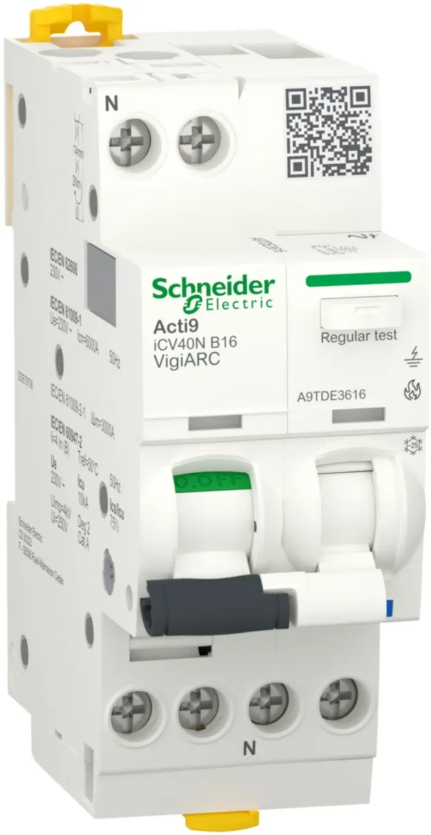 121.2 / Stück - Kategorie: Sonstige Elektroinstallationsartikel - Hager - GTIN:3250611012665 - Hager ARC916D Fehlerlichtbogen-Schutzeinrichtung AFDD mit LS-Schalter 1P+N 6kA B-16A 2M Der neue AFDD von Hager bietet zuverlässigen Schutz vor seriellen und parallelen Fehlerlichtbögen. Dafür sorgt ein Mikroprozessor, der kontinuierlich 120 Strom- und Spannungsparameter überwacht. Erkennt er charakteristische Strom- und Spannungsverläufe ab 2,5 A, die auf einen Fehlerlichtbogen hindeuten, schaltet er den Stromkreis ab. Weil er elektronisch auslöst, reagiert der Brandschutzschalter schneller und er arbeitet auch genauer. Einspeisung unten, Abgang oben Damit Sie noch leichter installieren, haben wir die neue AFDD Generation verbessert: Die Einspeisung erfolgt beim Brandschutzschalter unten, der Abgang befindet sich oben so wie allgemein üblich. Dank der bewährten quickconnect Technik entfällt das aufwändige Schrauben und Sie erledigen Ihre Arbeit in kürzerer Zeit. Technische Merkmale: Bemessungsbetriebsspannung Ue: 230 V Nennstrom: 16 A Auslösercharakteristik: B Nennabschaltvermögen: 6 kA Stoßspannungsfestigkeit: 4 kV Polanzahl: 2 P Isolationsspannung: 500 V Anzahl Module: 2 Energiebegrenzungsklasse I2t: 3 Gesamtverlustleistung unter Nennstrom: 5,22 W Drehmoment: 2,1 Nm Höhe installiertes Produkt 85 mm Breite installiertes Produkt 35,5 mm Tiefe installiertes Produkt 70 mm Betriebstemperatur: -25 bis 60 C Lagerungstemperatur: -40 bis 70 C - 121,20 Euro bei elektroversand-schmidt.de ... Dieser Schneider Brandschutzschalter mit integriertem FI/LS-Schalter ist eine fortschrittliche Lösung für maximalen Schutz. ![]() ![]() Schneider A9TDE3616 ACTI9 ICV40N 1P+N 16A B 30MA AFDD+FI/LS