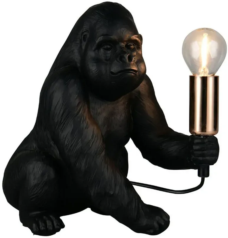 lieferbar-in 2-3 Werktagen bei dirmeineWunschleuchte Reality Leuchten LED Nachttischlampe, Dimmfunktion, LED wechselbar, warmweiß, Tischlampe ausgefallen-e besondere Affenlampe Gorilla Schwarz, H: 23cm schwarz